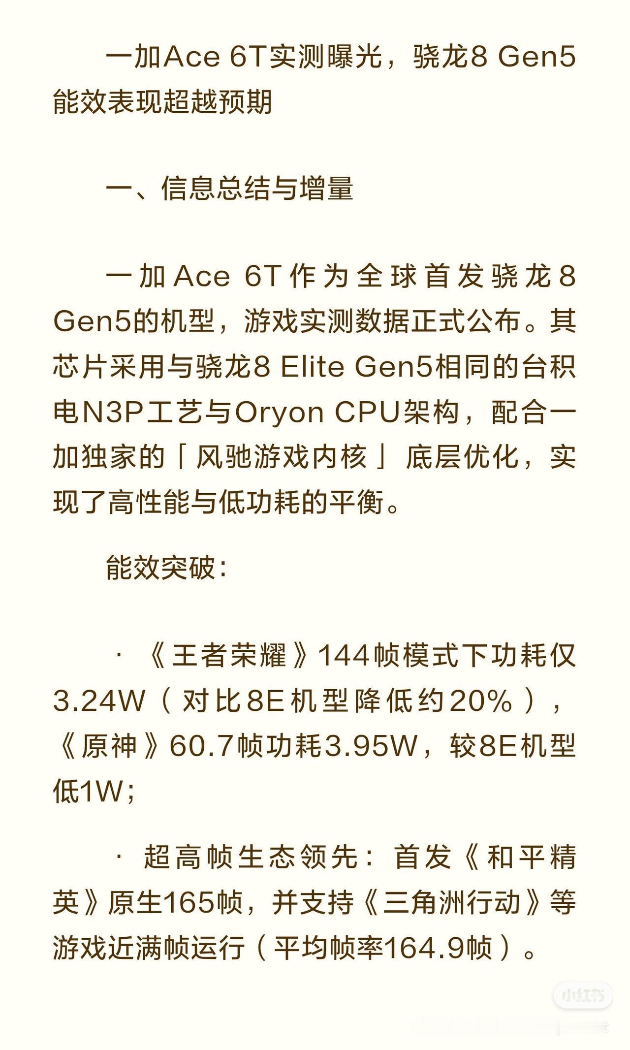 一加Ace 6T实测曝光,骁龙8 Gen5能效表现超越预期数码潮电大玩家华为ma