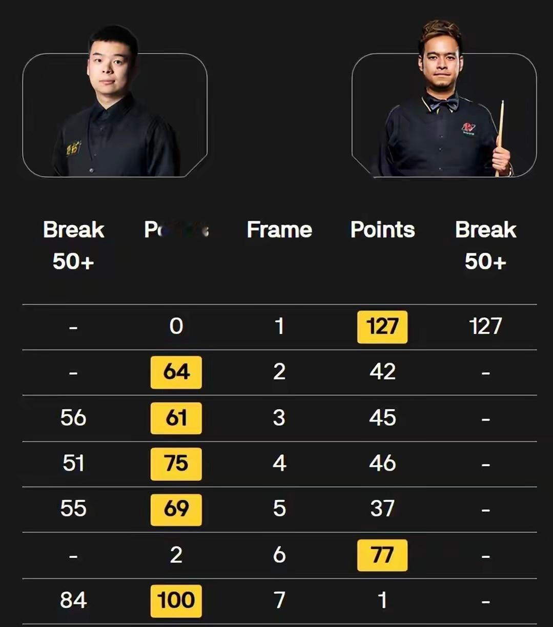 斯诺克英锦赛凌晨喜讯 6-2大胜:中国00后名将进正赛 淘汰泰国名将北京时间11月28日凌晨,2025年斯诺克英锦赛资格赛第四轮也就是决胜轮的对决,庞俊旭对阵桑坎姆的比赛结束,最终庞俊旭6-2击败了桑坎姆,晋级到了正赛也就是32强,大喜讯!1/16决赛,庞俊旭将对阵肖国栋,这是一场中国德比,中国军团提前锁定了一个16强席位。庞俊旭是中国的00后名将,一度凭借着出色的表现拿到过赛季最佳新人,只不过在最近几个赛季,庞俊旭的成绩一般,似乎有些未能天赋。目前庞俊旭排名第30位,从资格赛第三轮开始打起,6-4击败了利亚姆-海菲尔德后强势晋级第四轮。桑坎姆是泰国名将,目前排名第35位,在6-3击败米哈乌·苏巴尔奇克后、晋级第四轮!从两人的排名来看,综合实力还是比较接近的。根据正赛的签表,两人之间的胜者将会在正赛首轮对阵肖国栋,如果庞俊旭能够取胜,届时将会上演中国德比。第一局上来,庞俊旭直接漏机会了,桑坎姆上手连续拿分,打出了单杆的高分,而且是完成了清台,单杆127分、127-0零封拿下,大比分1-0领先庞俊旭。第二局,桑坎姆开球,两人连续的防守,庞俊旭一杆打带防漏了机会,桑坎姆直接长台拼进,又获得了上手机会,他并没有急于K红球,单杆31分未能连上彩球,被迫转入到防守,庞俊旭也无法上手,反倒是桑坎姆再次拼进了长台,再次上手,还好的是,打到了38分又中断,但庞俊旭的手感实在太差,简单的底库红球也打丢了。桑坎姆架杆失误、继续送机会,庞俊旭母球走位不好,14分只能是继续防守。庞俊旭在之后清掉了所有的红球,清彩阶段运气不错、晕进了黄球,51-39领先,桑坎姆没有机会,庞俊旭还是64-42拿下,1-1扳平。第三局,桑坎姆打到了45分,之后的一波防守之后,庞俊旭上手,直接是完成了清台、61-45再胜一局,2-1反超了桑坎姆。第四局,桑坎姆的手感明显下滑,节奏打得有些乱,庞俊旭则是凭借着单杆51分、75-46拿下,大比分3-1扩大优势,进入到中场休息。休息过后,第五局,桑坎姆23分中断,庞俊旭打出单杆55分后、打丢黑球!在所有红球被清掉之后,庞俊旭56-37领先、并未能超分,桑坎姆没机会,还是庞俊旭更加的稳定,成功拿下,4-1继续巩固优势。第六局,桑坎姆多次上手77-2拿下,第七局,庞俊旭则是打出单杆84分、100-1轻松拿下,5-2拿到了赛点。第八局,桑坎姆原本优势还算明显,庞俊旭追到了50-63、打丢绿球!接着两人进入缠斗,终于还是庞俊旭开始清彩,上演了单局逆转的好戏,6-2击败了桑坎姆,晋级到了正赛。从全场来看,庞俊旭虽然没有单杆破百,但却有四杆50+的表现,桑坎姆则是在第一局打出了单杆127分。