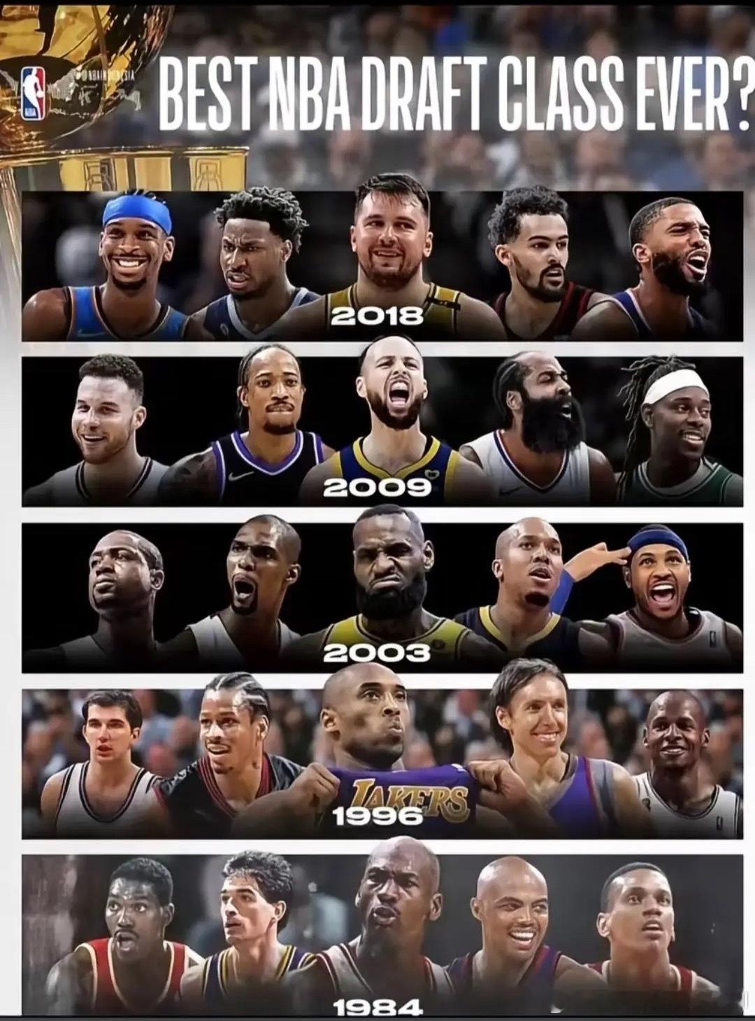 84有内有外最合理,96外线群星味最浓内线稍差,03一代抱团大队含金量低,09一代投射最强,18小球时代数据最好看。