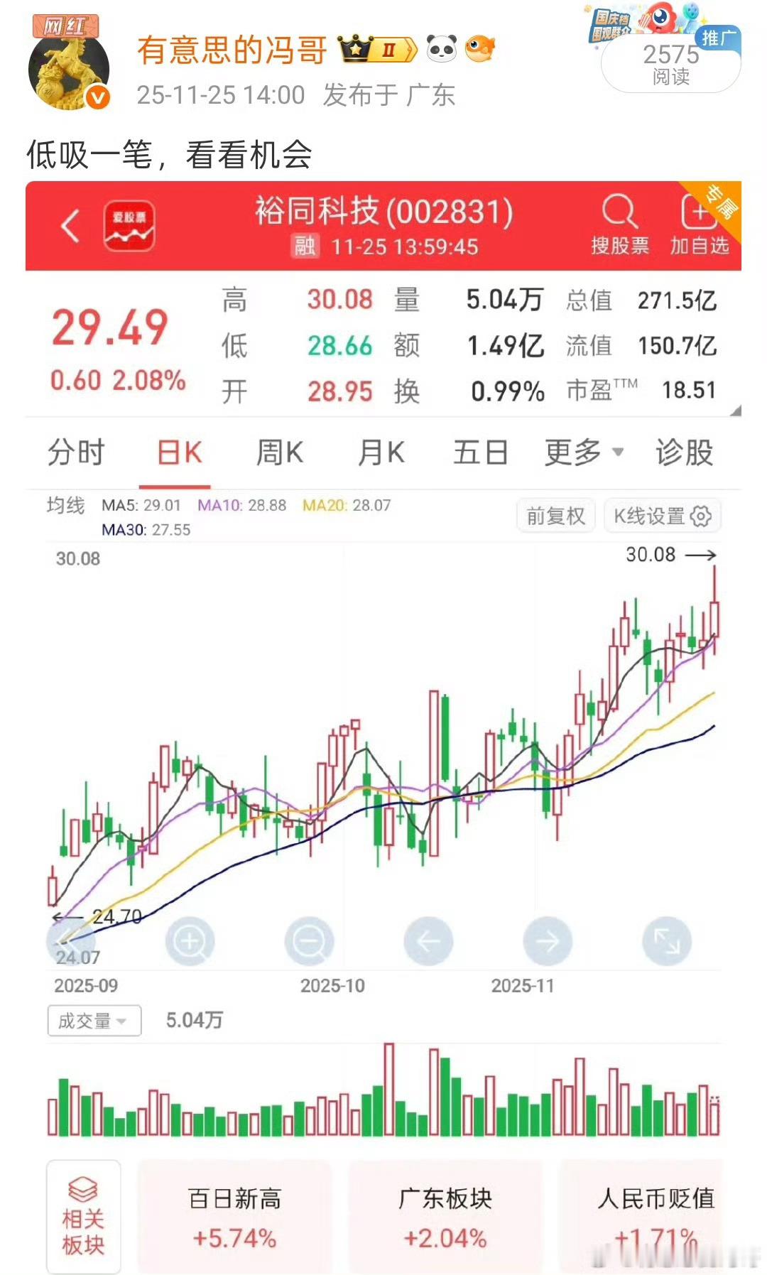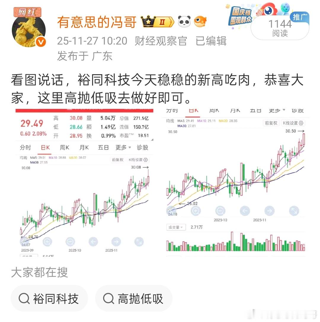 看图说话,V+会员埋伏的裕同科技继续新高吃肉,相当完美阿,恭喜大家了,不会做T朋