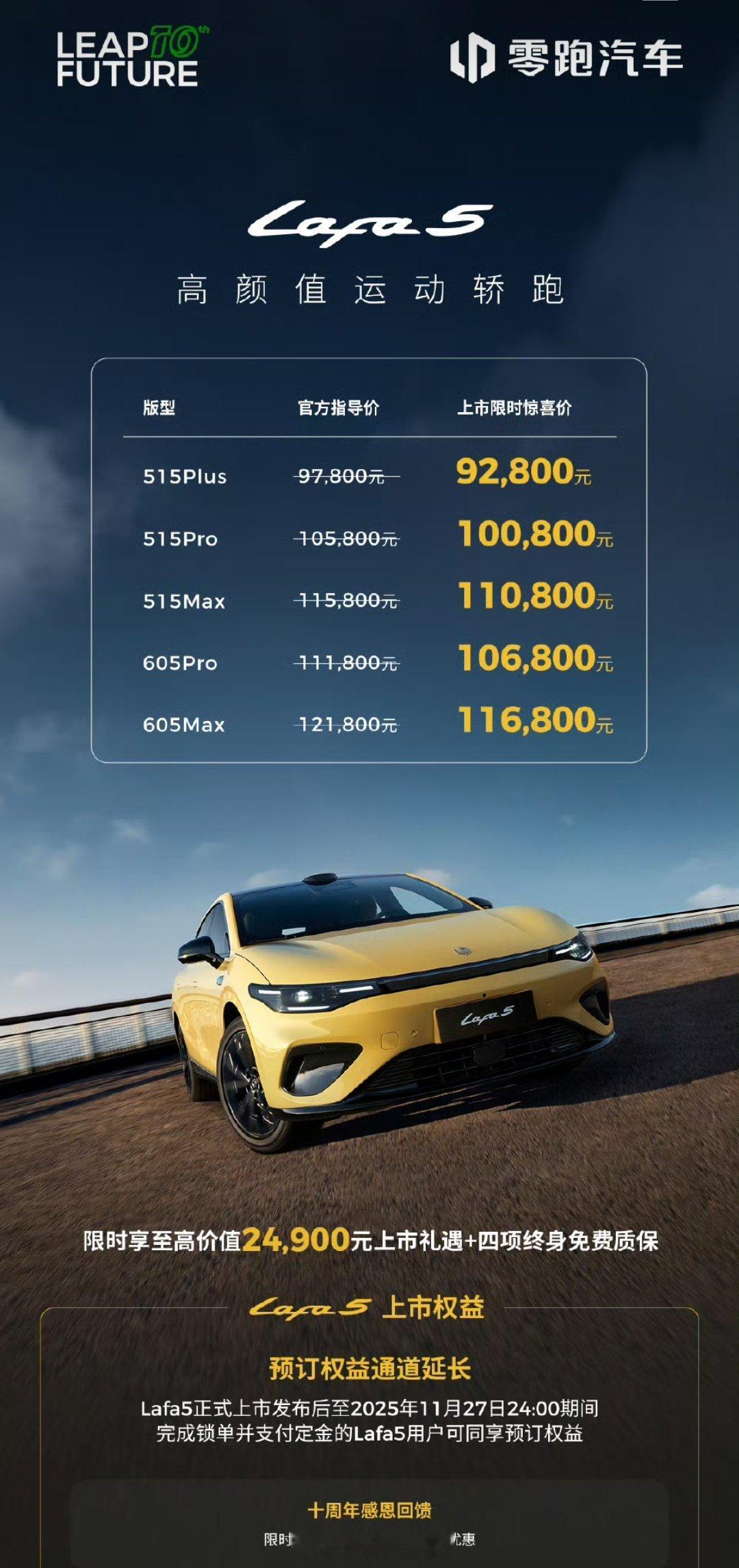 零跑Lafa5开启轿跑10万级时代零跑lafa 5上市,限时权益起步价9.28万起,相比预售价直降了1.7万,零跑上市价格是真不让人失望!