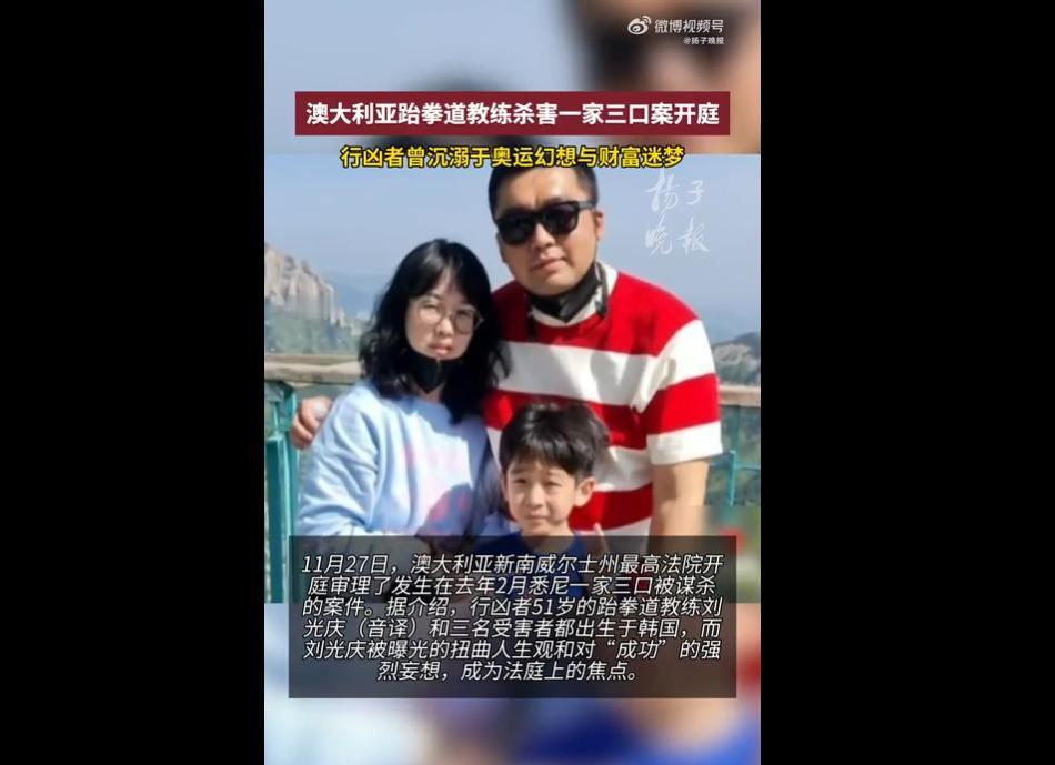 11月27日,澳大利亚新州最高法院审理悉尼一家三口遇害案,51岁韩国裔跆