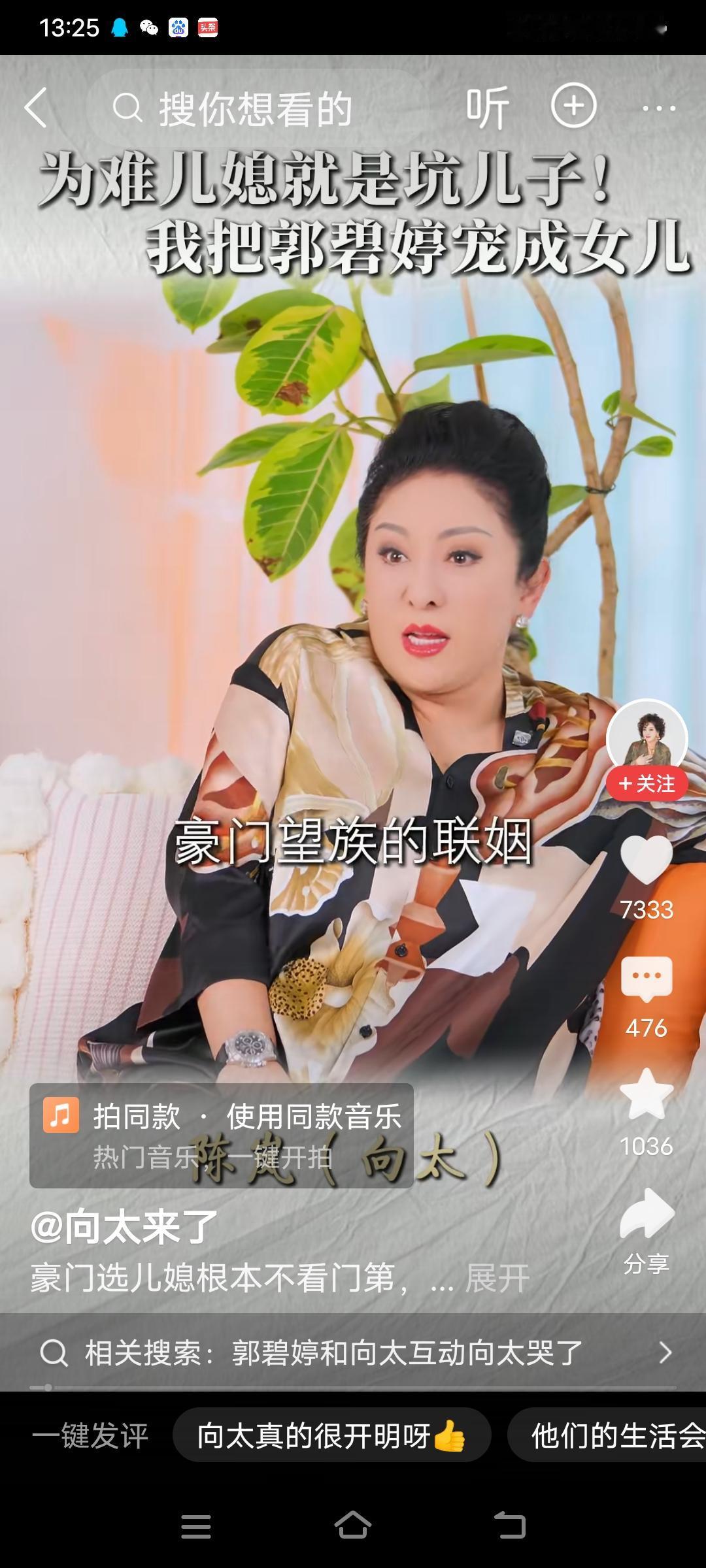 向太分享的婆媳关系之道,宛如一盏明灯,实在是通透至极。 当有些人还深陷门当户对的传统观念中时,向太却有着更为豁达的见解。她不以门第高低来评判儿媳,而是将善良、孝顺和明事理作为重要的考量。 她对待郭碧婷,真可谓视如己出,像疼爱亲生女儿一般、她尊重郭碧婷的每一个选择,给予她充足的自由和空间,让婆媳关系充满了温馨与融洽。 正因如此,家庭中欢声笑语不断,向太为我们诠释了婆媳相处的真谛,值得每个家庭学习借鉴。