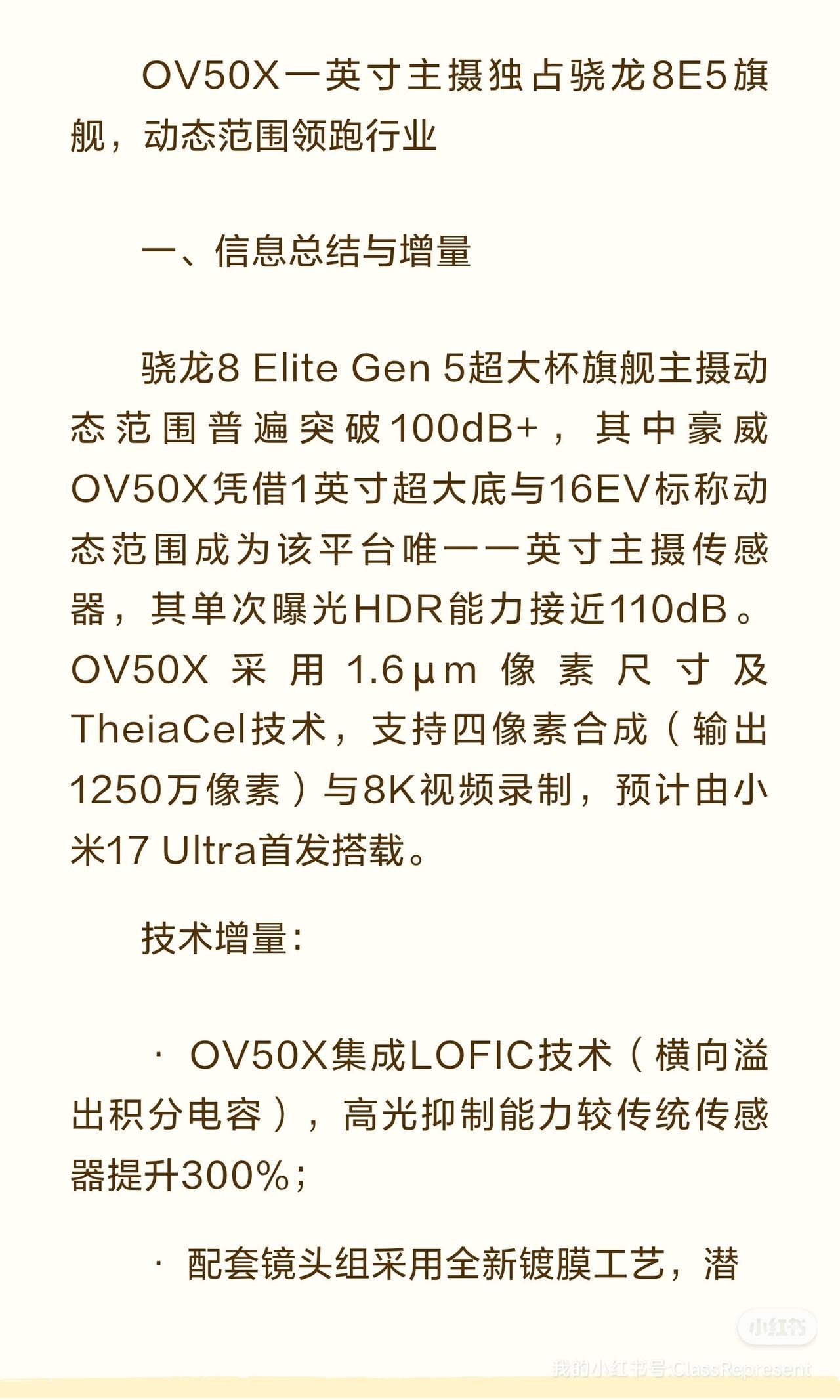 OV50X一英寸主摄独占骁龙8E5旗舰,动态范围领跑行业