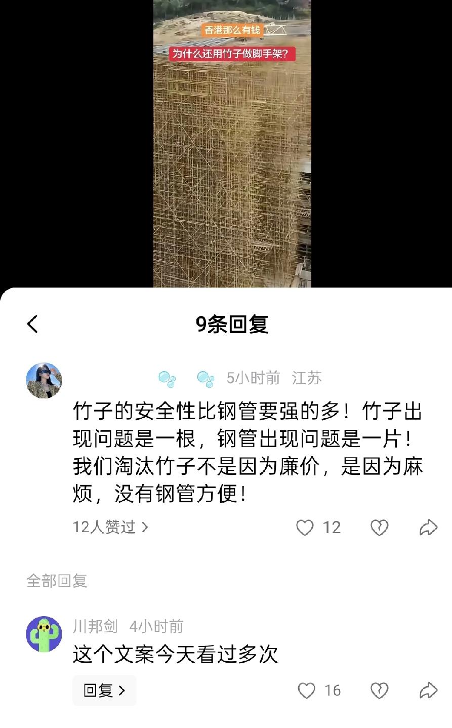 【别再吹“竹脚手架更安全”了!这误区该清了】 最近刷到“香港竹脚手架比钢管安全”