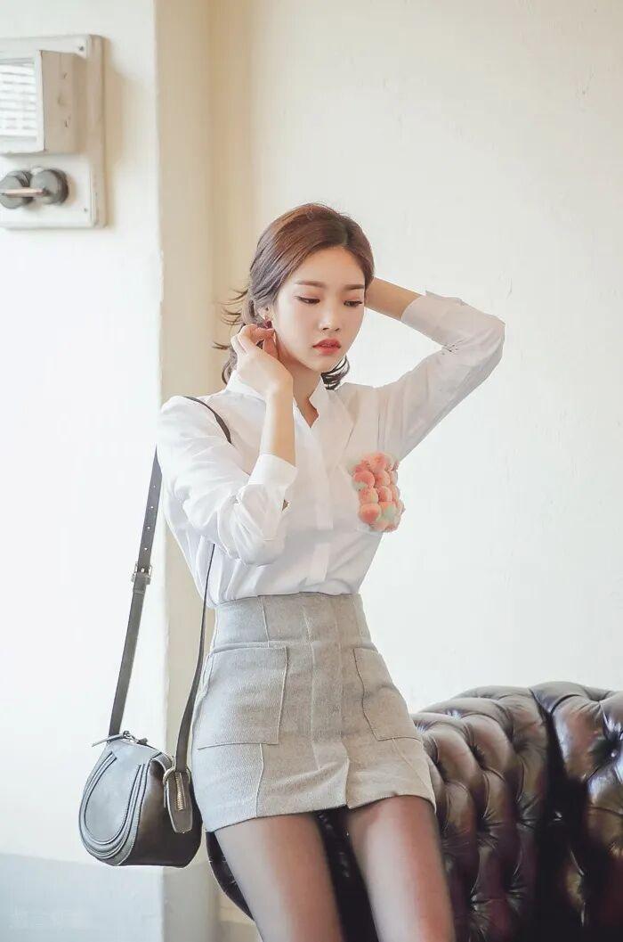 优雅白领风穿搭,粉色花饰衬衫搭配灰色短裙,尽显时尚与知性!什么样的穿搭可以成为气质女神? 女生如何穿搭看起来时尚更有品味呢 你日常是怎样穿搭的