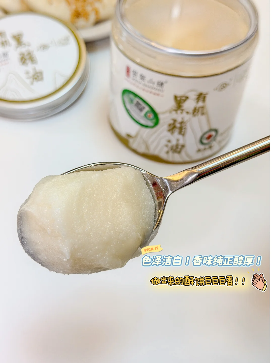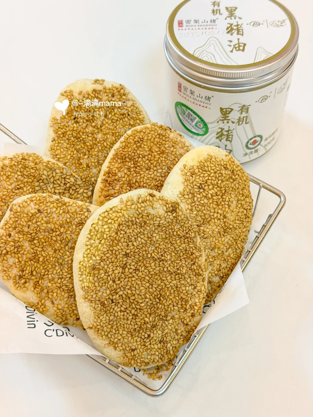 今天能做出这么好吃的芝麻酥饼,秘诀终于被我找到了!原来是我新打开的这罐密架山猪有机黑猪油[派对R],它真的和普通猪油不一样,它来自哀牢山1800米以上高海拔散养的黑猪,这些小猪足足慢养了365天以上。