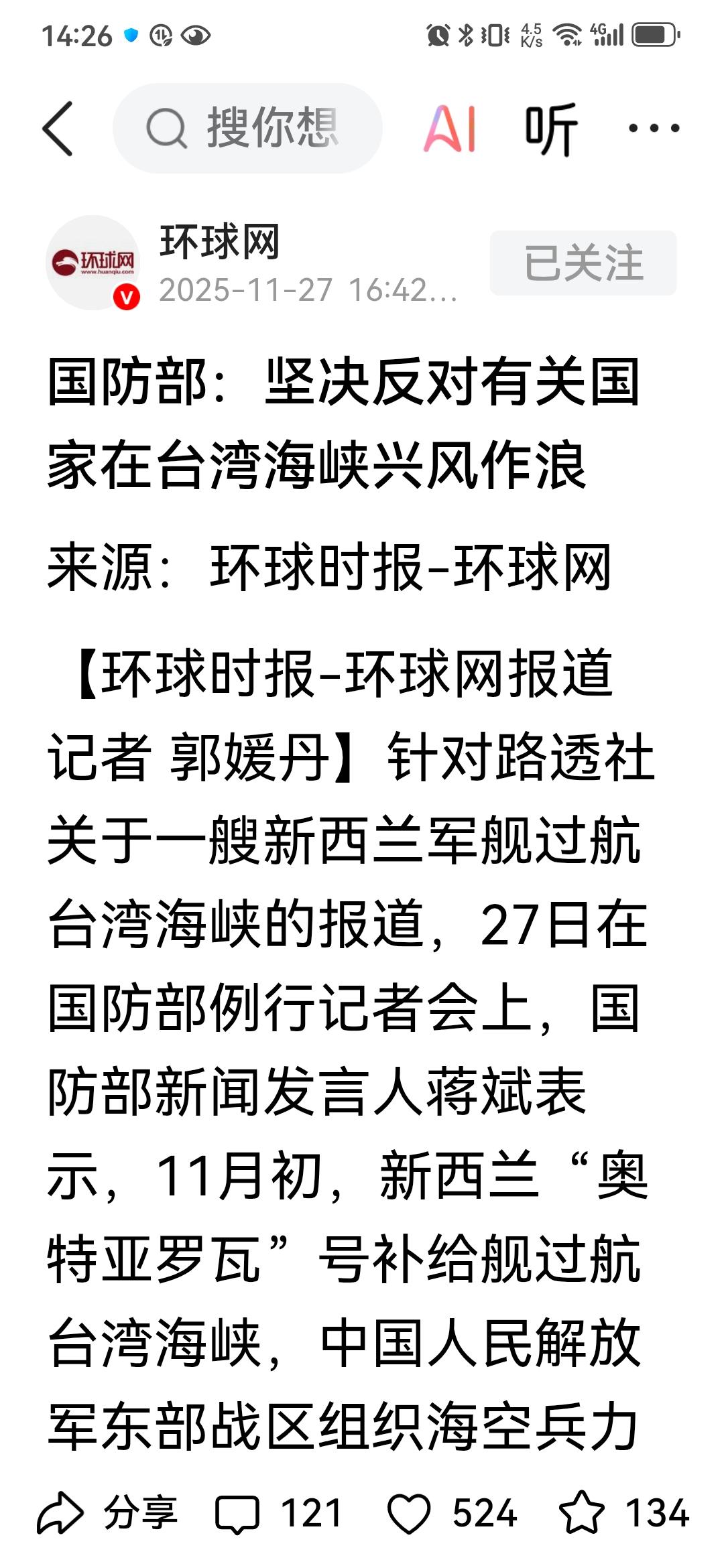 纽村的“军舰”也开我们的台湾海峡溜达。 是不是很可笑,蕞尔小国的什么军舰也敢来凑个热闹。 我觉得,一方面应该坚决反对,关键还是要快速收复台湾,将海峡变成我们自己的内海。否则,不管是螃蟹还是皮皮虾都想从这露露脸,显摆显摆。