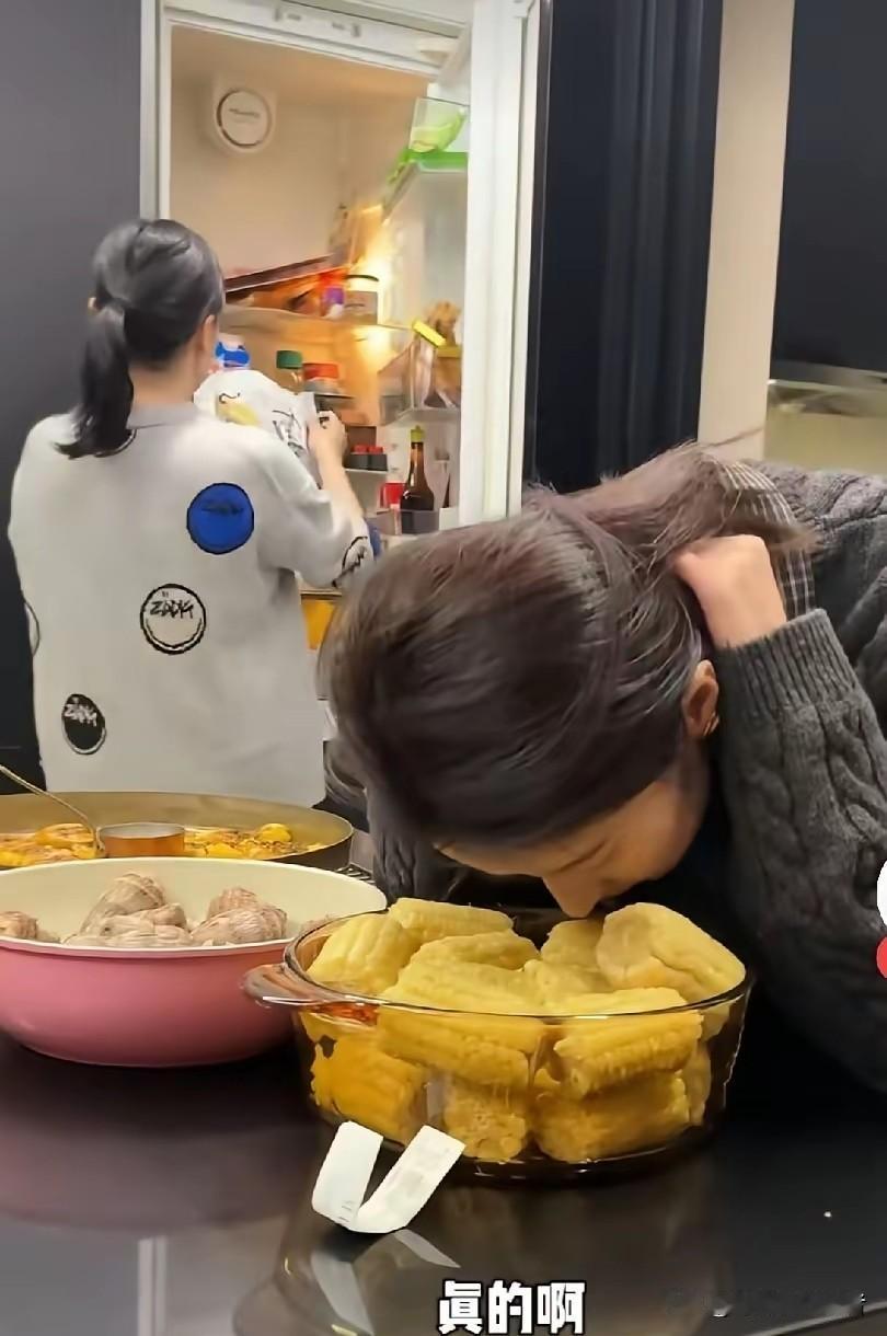 要不是网友说,真的忽略了,颖儿这闻菜味的动作也太夸张了吧,感觉要把自己放到盘子里,也太近了吧。 颖儿看起来应该是饿了吧。