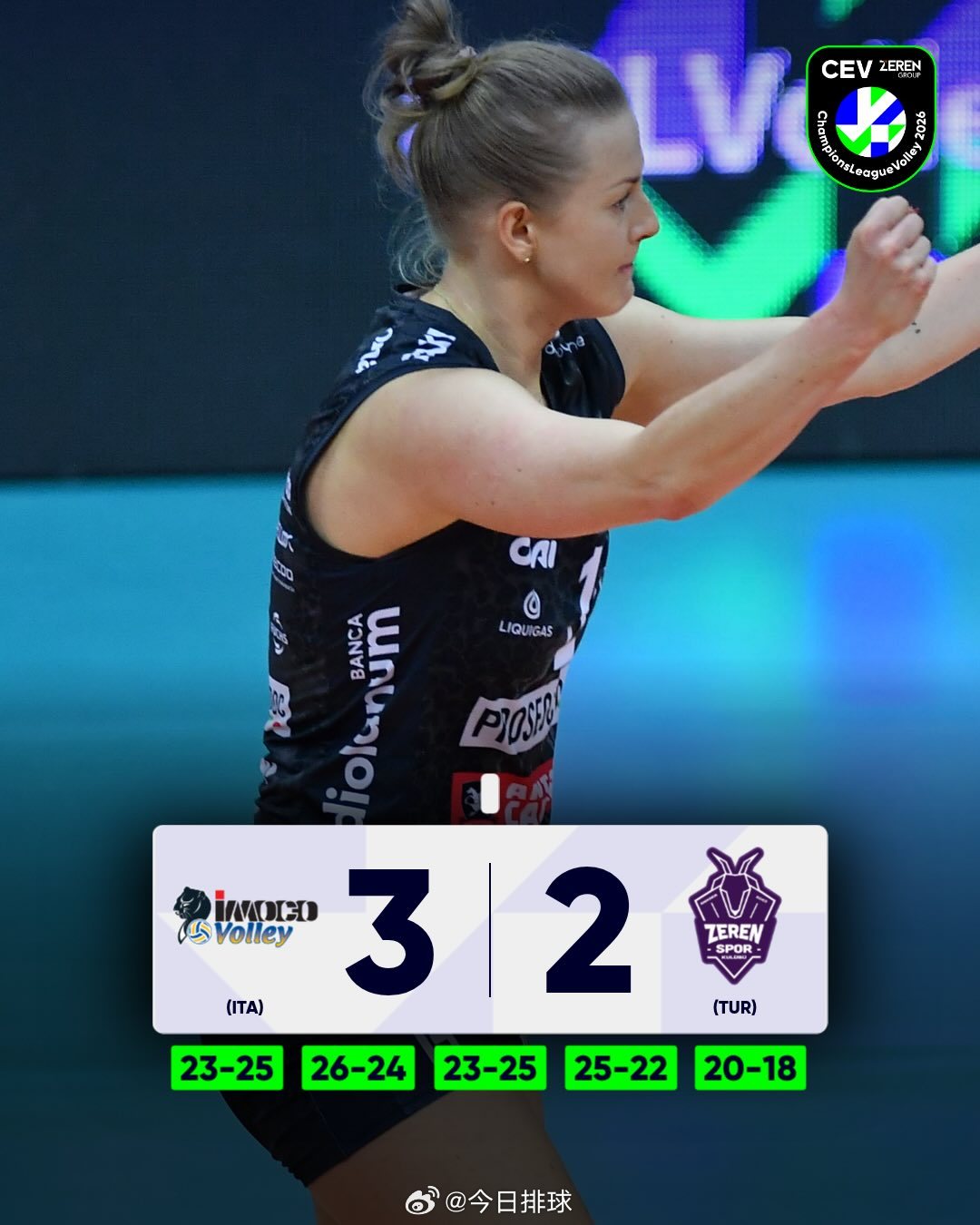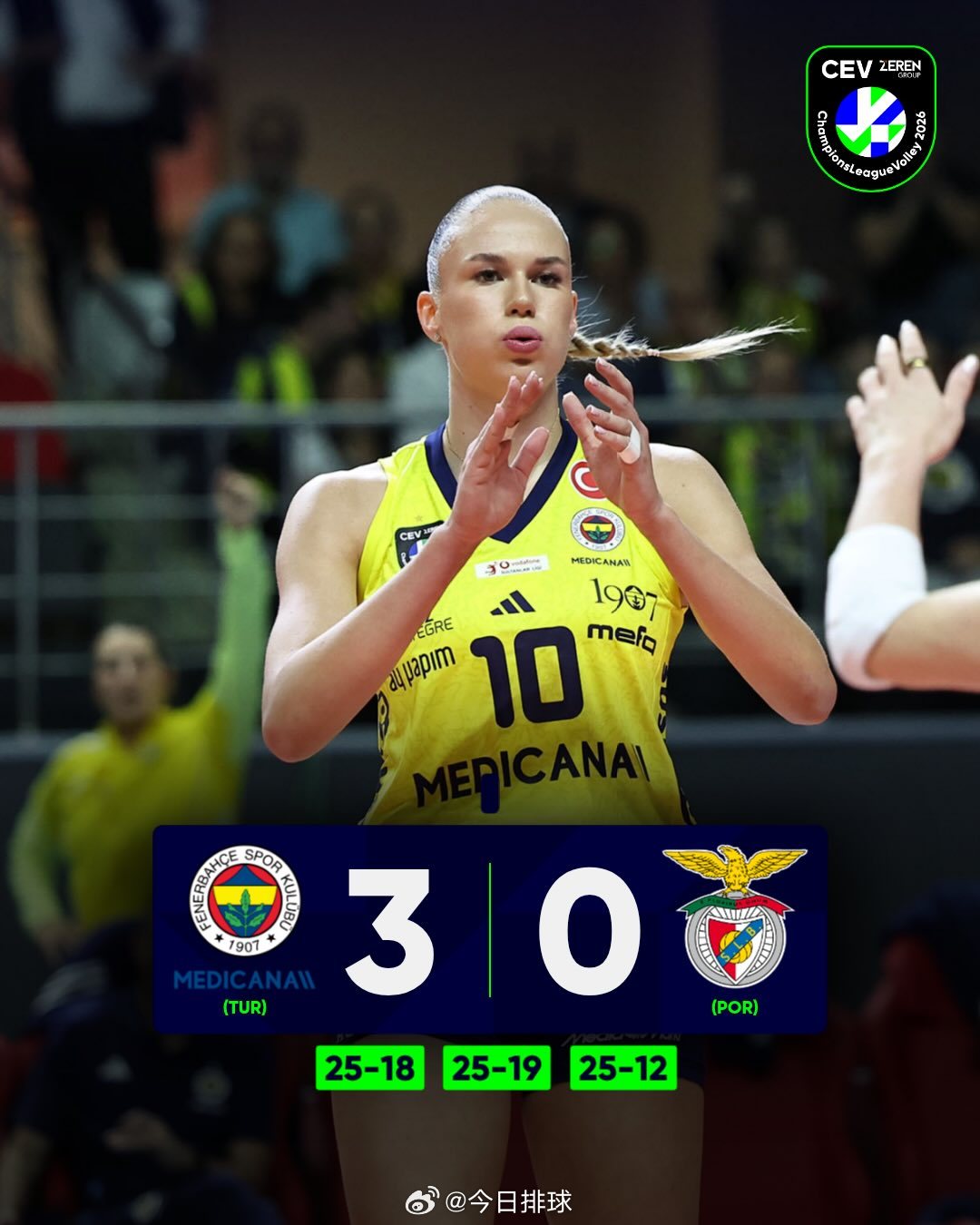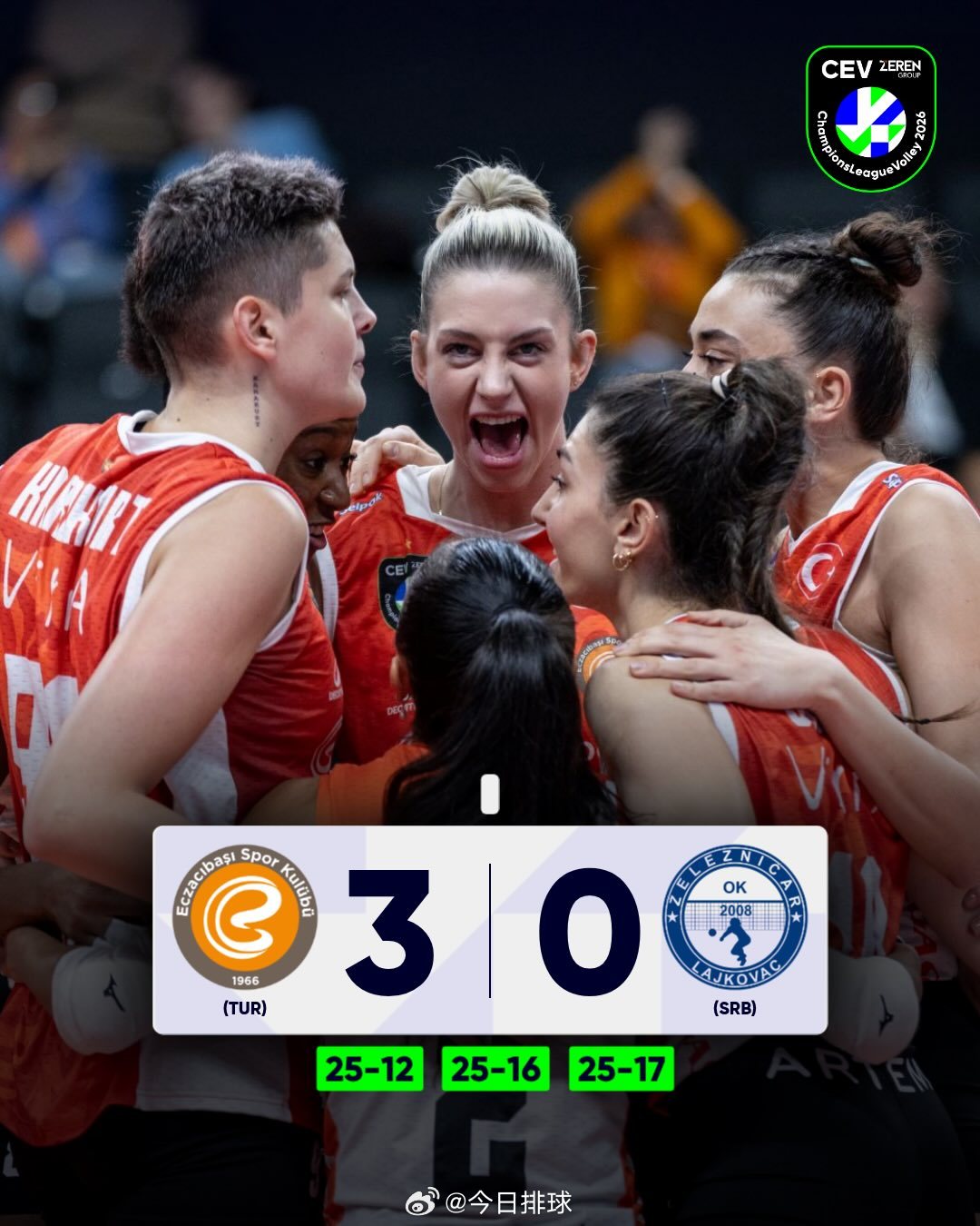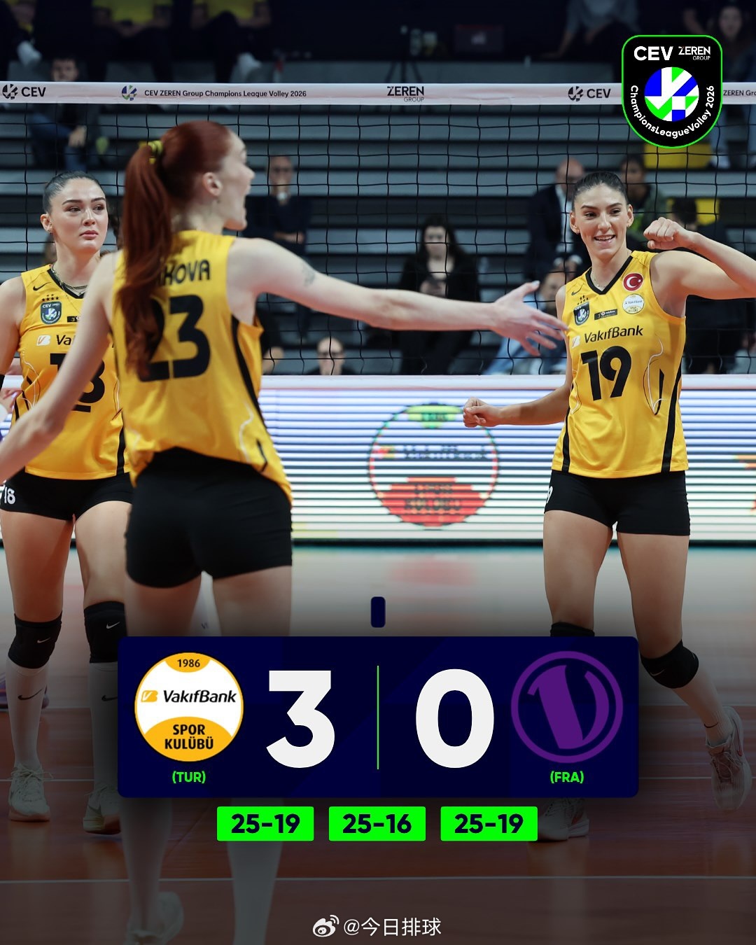【2026女排欧冠 正赛小组赛第1轮:土耳其俱乐部三胜一负】小组赛第1轮共10场比赛北京时间28日凌晨结束,参赛的共四支土耳其俱乐部,只有泽仁体育以2-3惜败科内利亚诺,费内巴切、伊萨奇巴希和瓦基弗银行均在各自的小组中战胜了里斯本、铁路工人和勒卡内,获得了三胜一负的战绩。