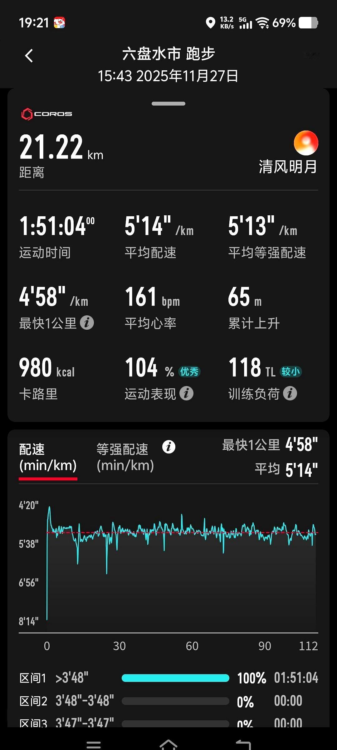 下午路跑拉练。 也不知道哪来的劲儿,她在亚高原一个人就这么跑完了半马,还跑出了5分14的配速。 所以她总是一个人去挑战这种别人看来很难的配速,每一次跑完,她都给自己注入满满的自信。