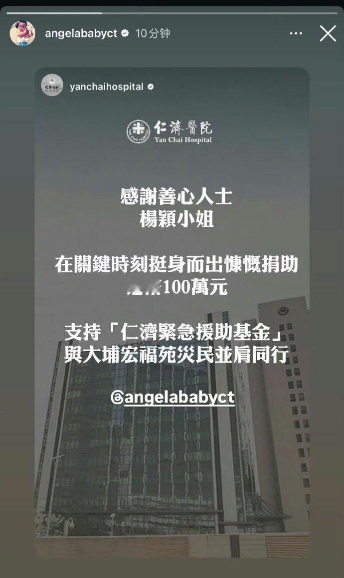 angelababy为香港火灾捐款100万元angelababy向香港灾区捐款港币100万元 angelababy为香港火灾捐款100万元