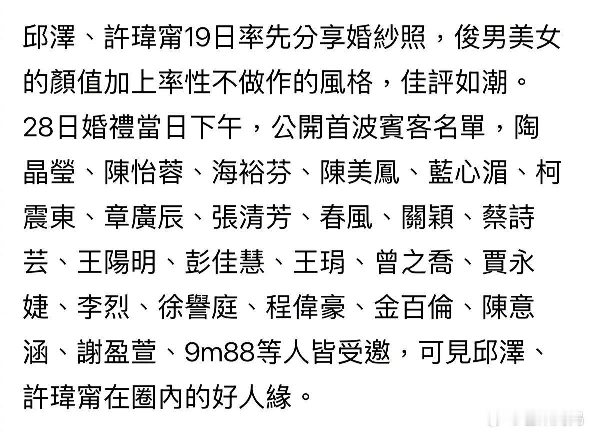 邱泽许玮甯今晚举行婚宴,好多圈内好友都去了