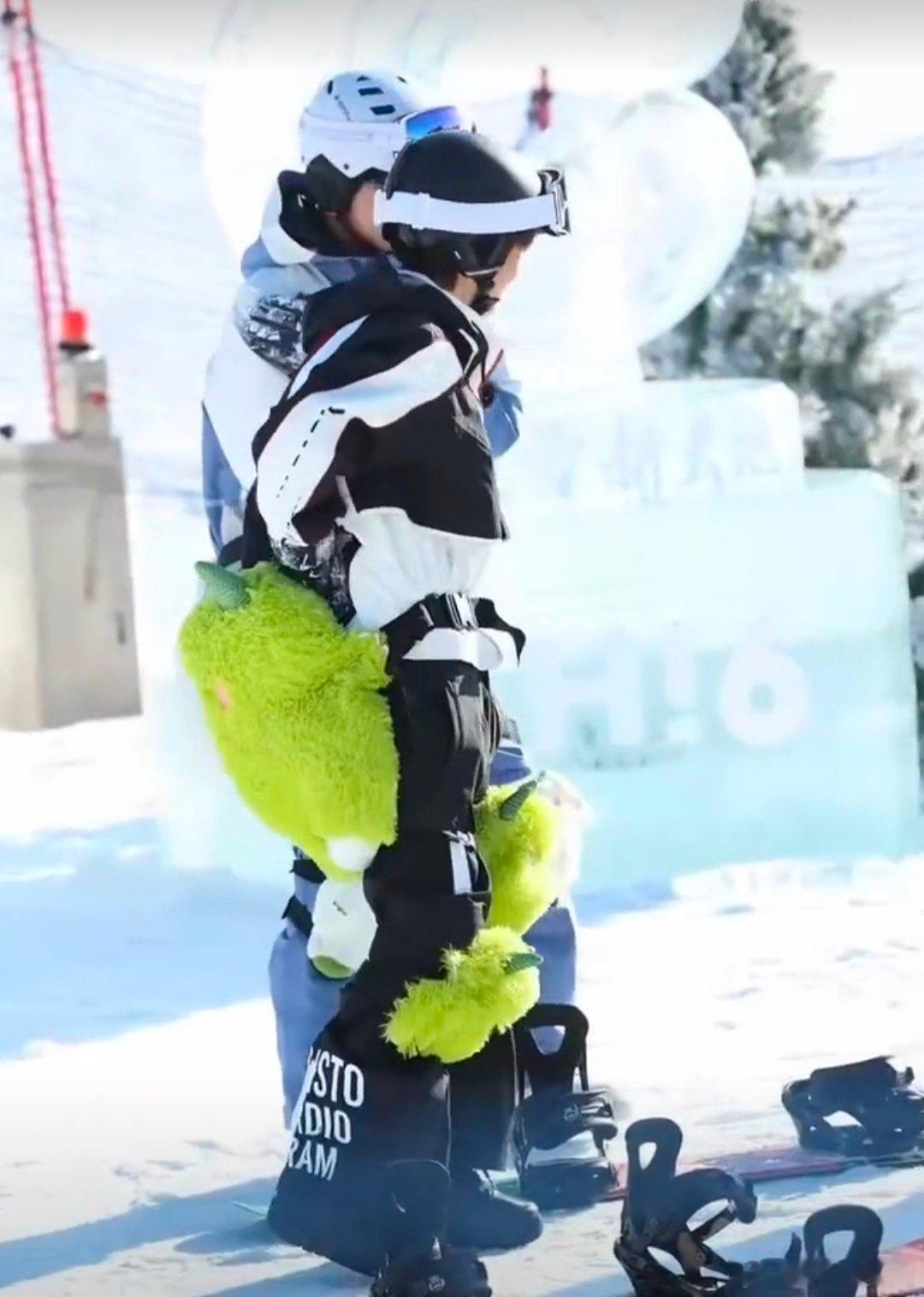 刘宇滑雪热身也不忘了比love你好星期六 谁懂啊!刘宇滑雪热身都在比love,绿色独眼娃娃装备萌化人心,优雅落座变平地摔跤,爬起来的样子软萌又倔强,已经被圈粉~