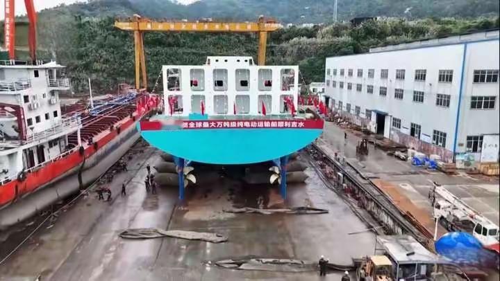 近日,全球最大的万吨级纯电动运输船“葛洲坝”号在湖北宜昌成功下水,标志着内河航运