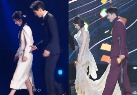 无独有偶,赵丽颖和林更新一起出席活动时,林更新每次都暖心帮她提裙子,有仅只有给她提裙子。