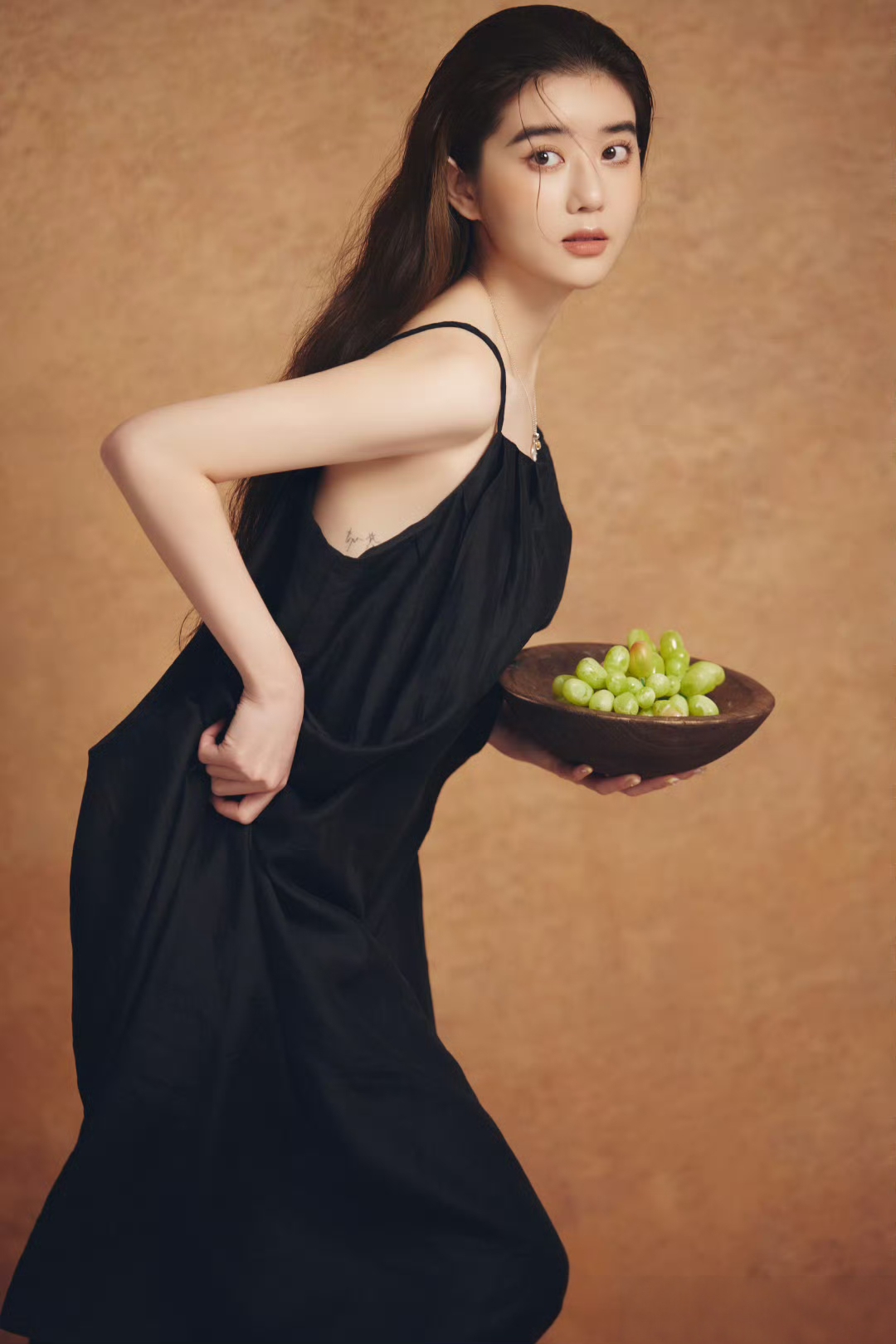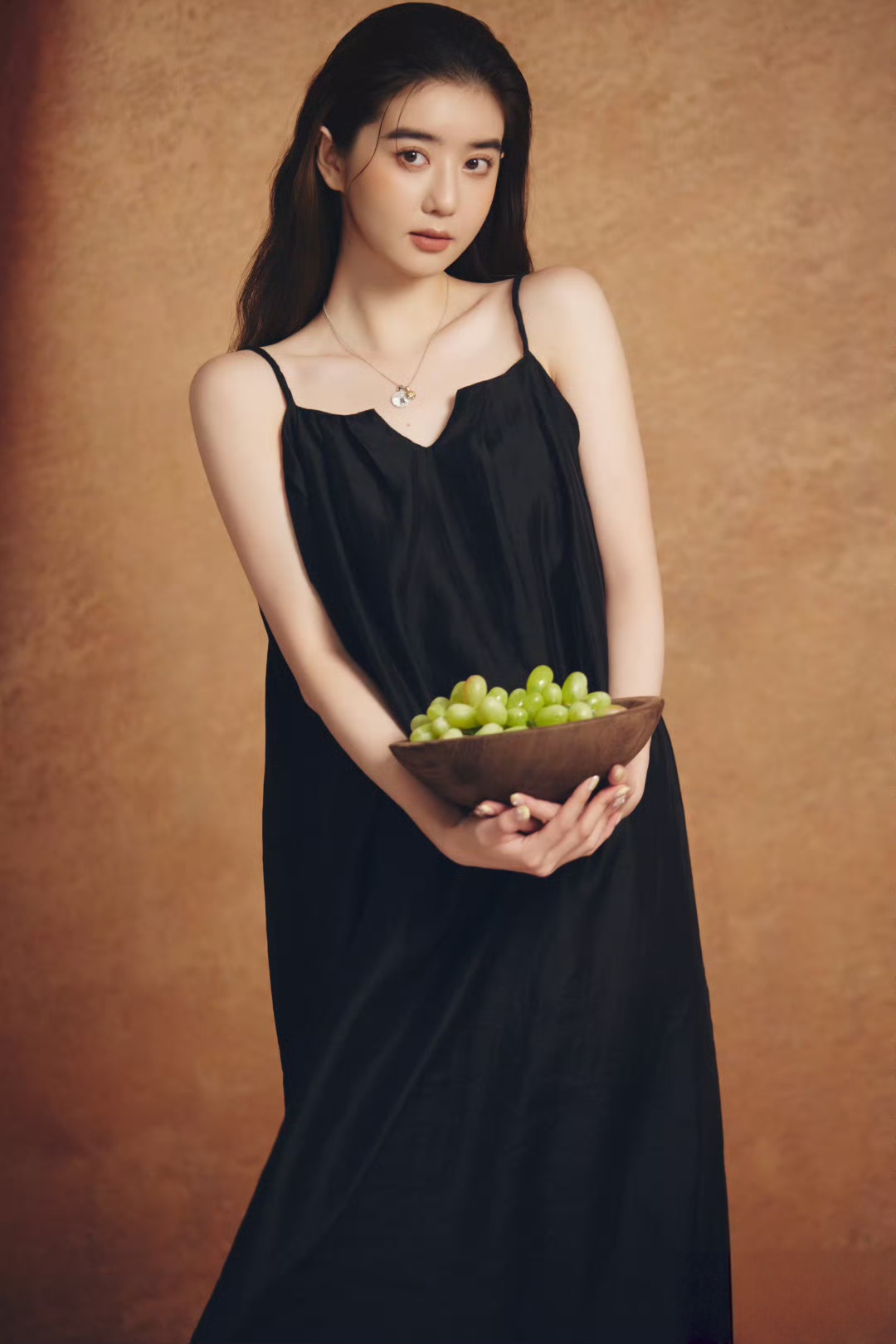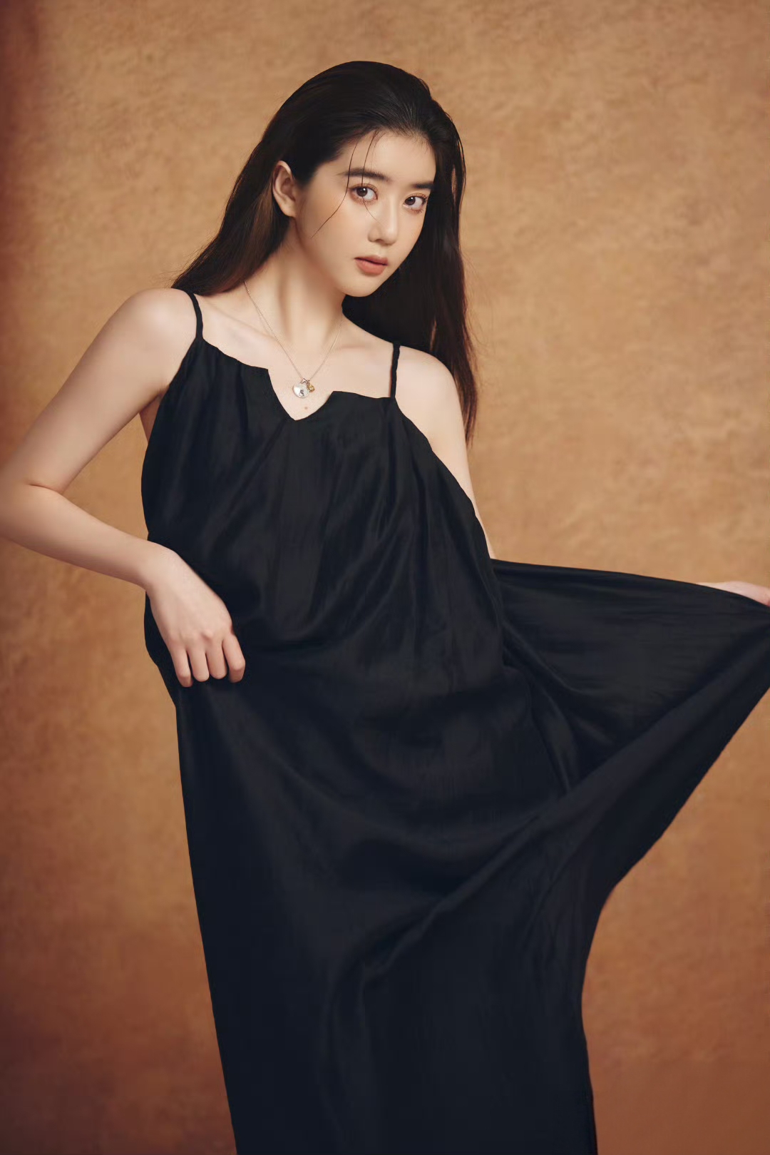 黑色诱惑李凯馨 一袭黑色吊带裙,勾勒出纤细的锁骨与朦胧的性感🖤暗黑系写真的氛围感少女~