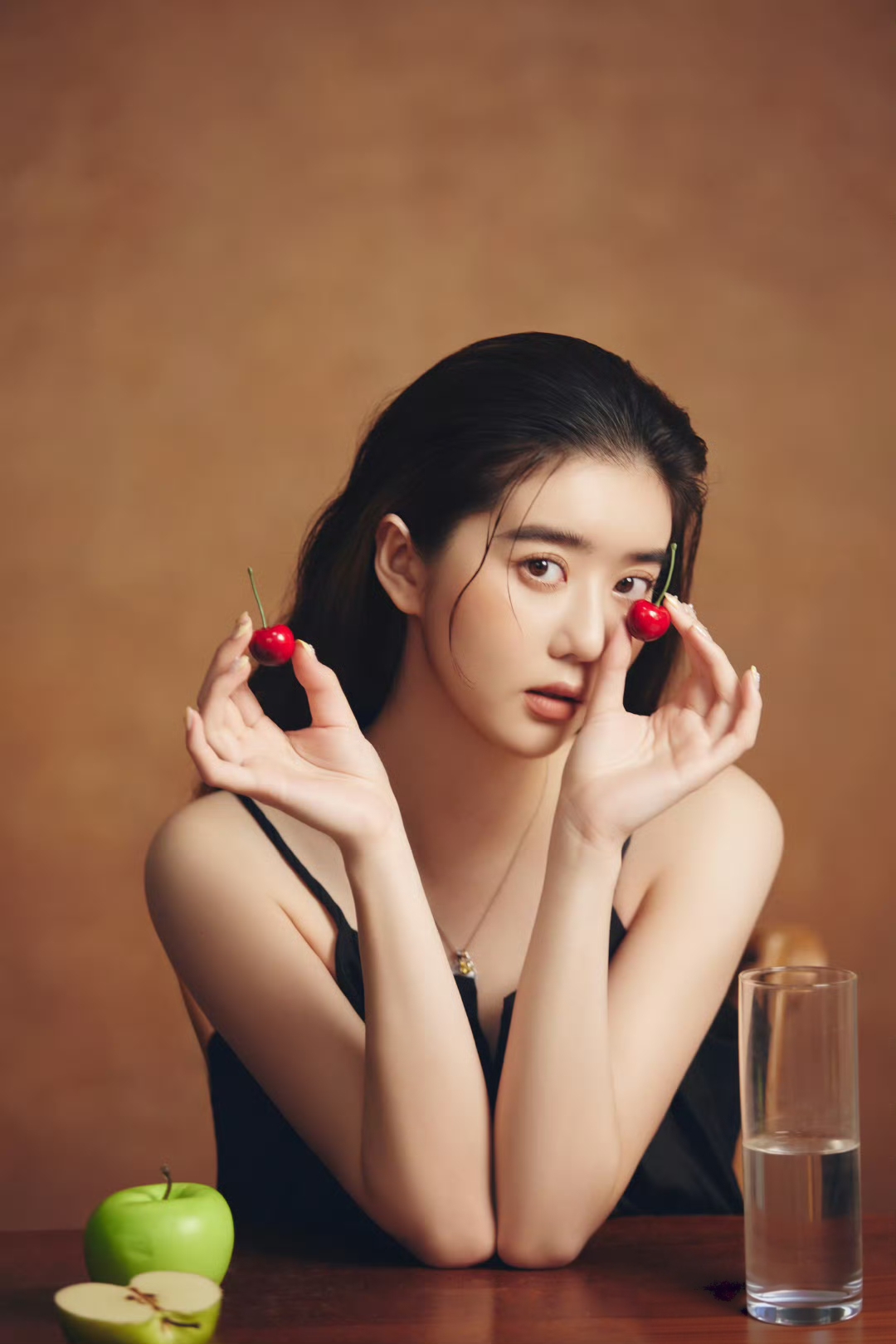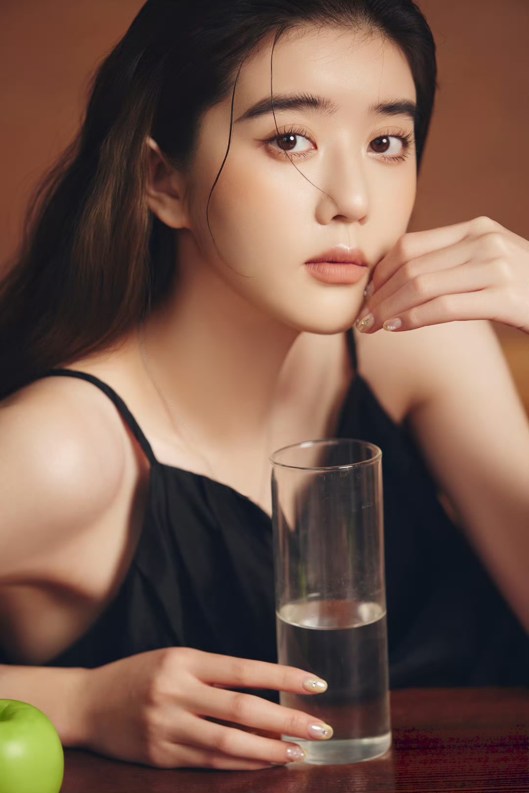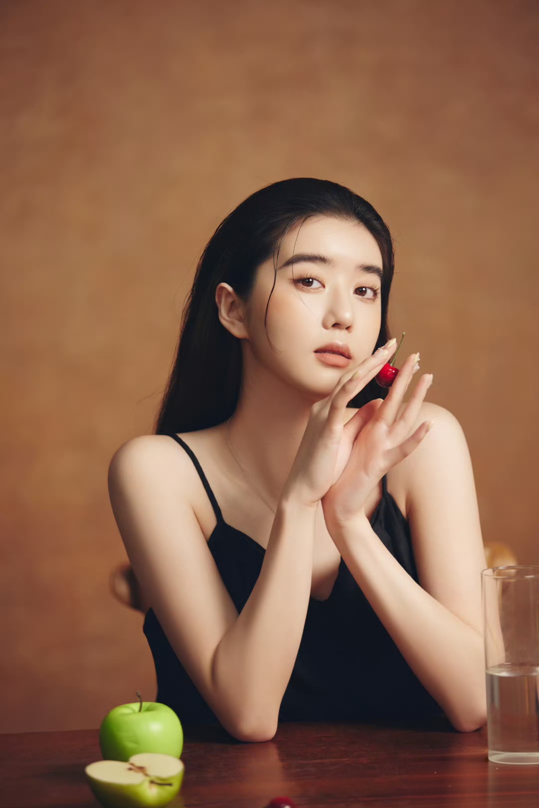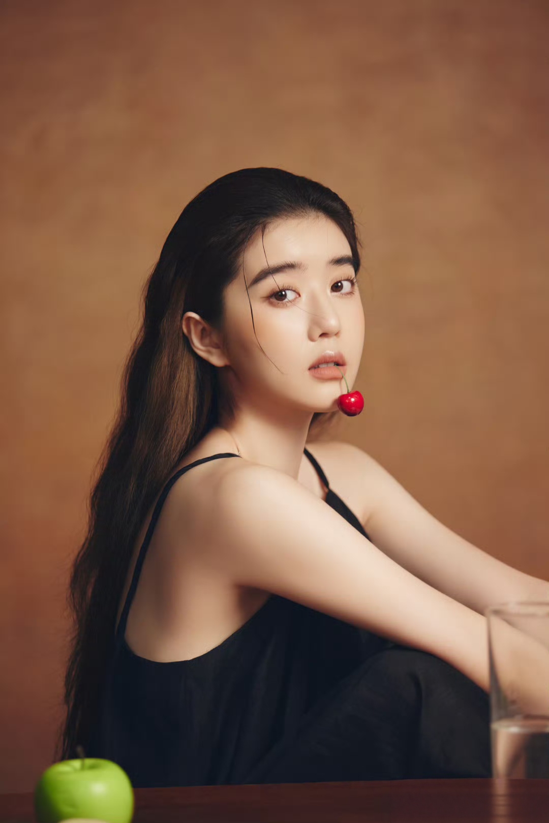黑色诱惑李凯馨 一袭黑色吊带裙,勾勒出纤细的锁骨与朦胧的性感🖤暗黑系写真的氛围感少女~