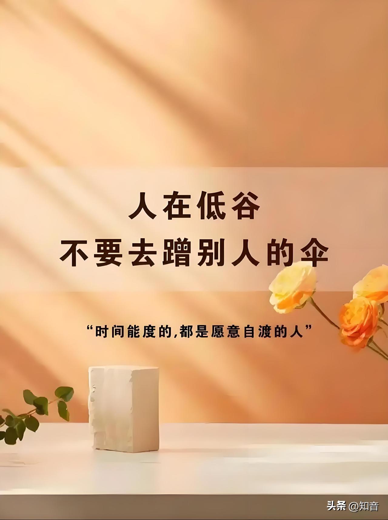 人这一辈子混到低谷之时,其实求人还不如求己! 每个人都有身处困境的时候,而且无心参加工作,生活又是一地鸡毛。 最主要的钱又不够花,天天又不够睡,满心烦恼无人可诉。 亲人和朋友的帮助只能管得了一时,但管不了一辈子。 再说这年头都很艰难,谁都没有义务一直选择帮助你。 靠人人会跑,靠山山会倒,指望他人,不如自己做自己的靠山。 正所谓是物极必反,静待其变,事情坏到极致时,就会慢慢变好。 身处低谷,四面楚歌又如何,不甘心的自己才是破局的关键。不放弃,不退缩,在绝望之中努力让自己变的无坚不摧,终会迎来柳暗花明又一村。