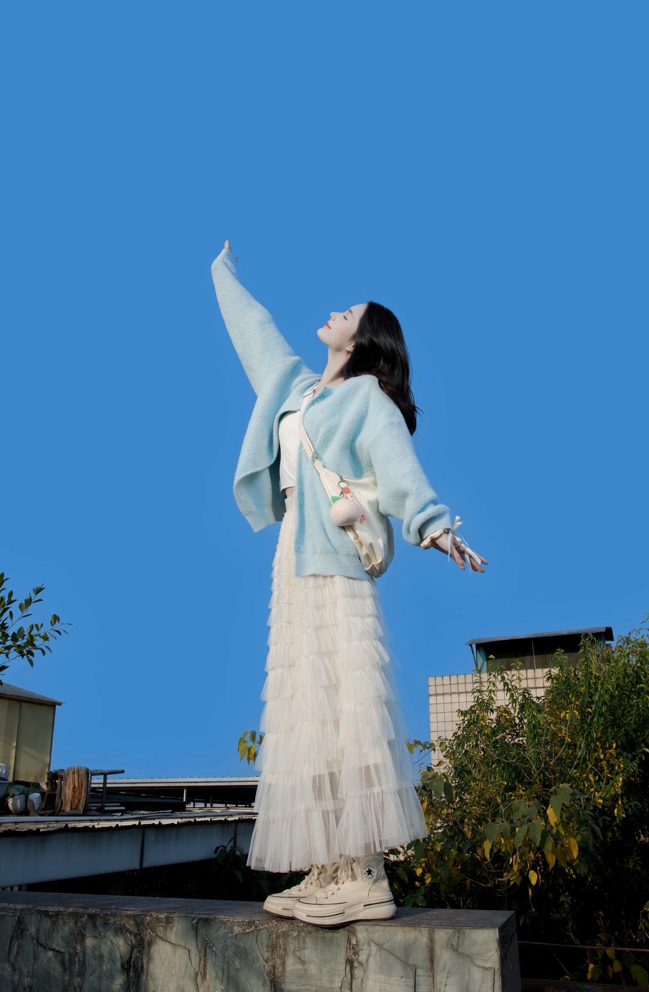 把蓝天穿在身上~毛衣穿搭 针织开衫