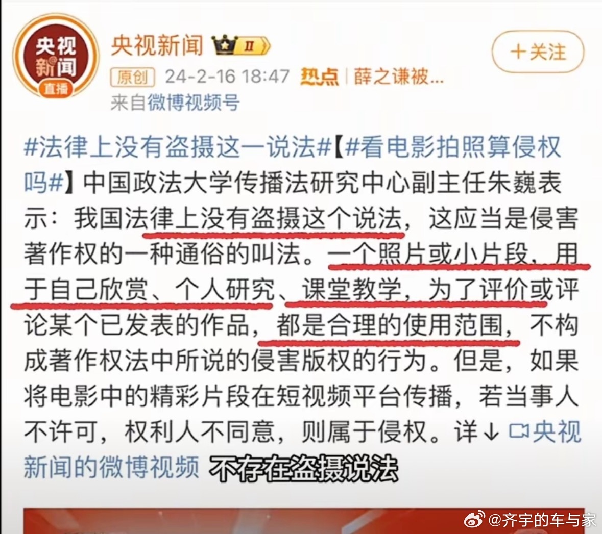 只要有热门电影,这话题必上热搜,一次性说清楚,🔺首先法律上没有“盗摄”这个概念,只有侵害著作权🔺拍摄几张图片或短时间的片段发朋友圈,属于合理引用🔺长时间录制或者用来盈利属于侵权疯片盗摄城