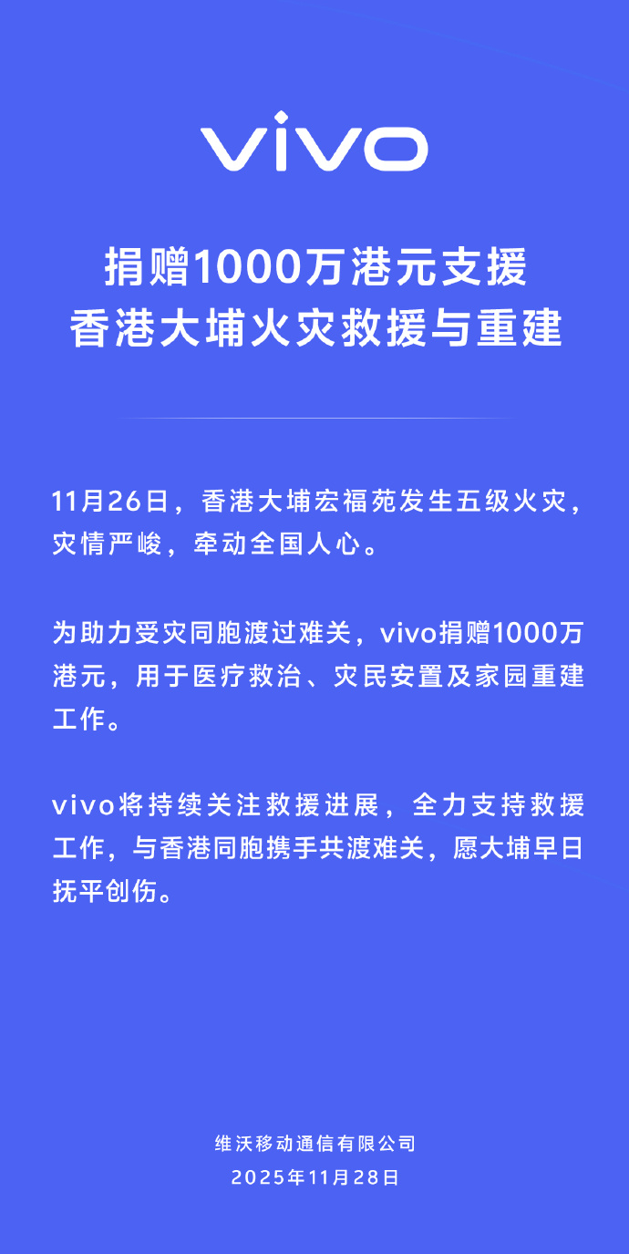 给vivo点赞!捐赠1000万港元支援香港大埔! 国产TOP5品牌,现在还有谁家在作壁上观呢?