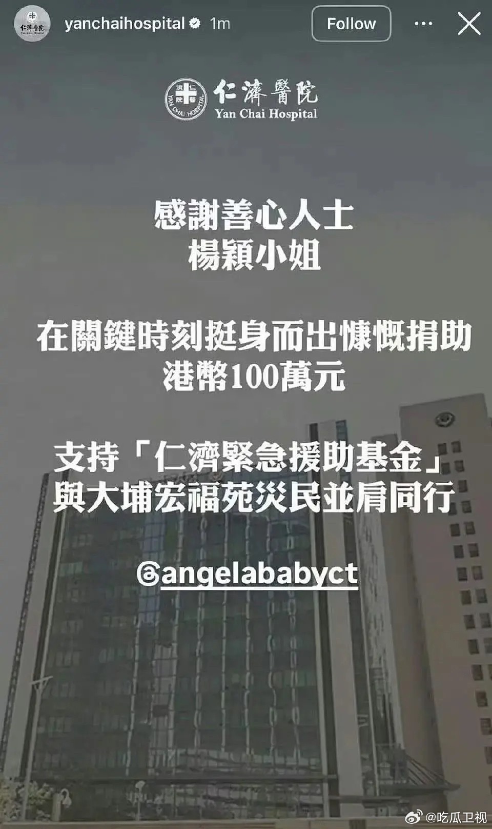杨颖angelababy捐了100w直接捐给香港医院的,这种不通过第三方的方式,