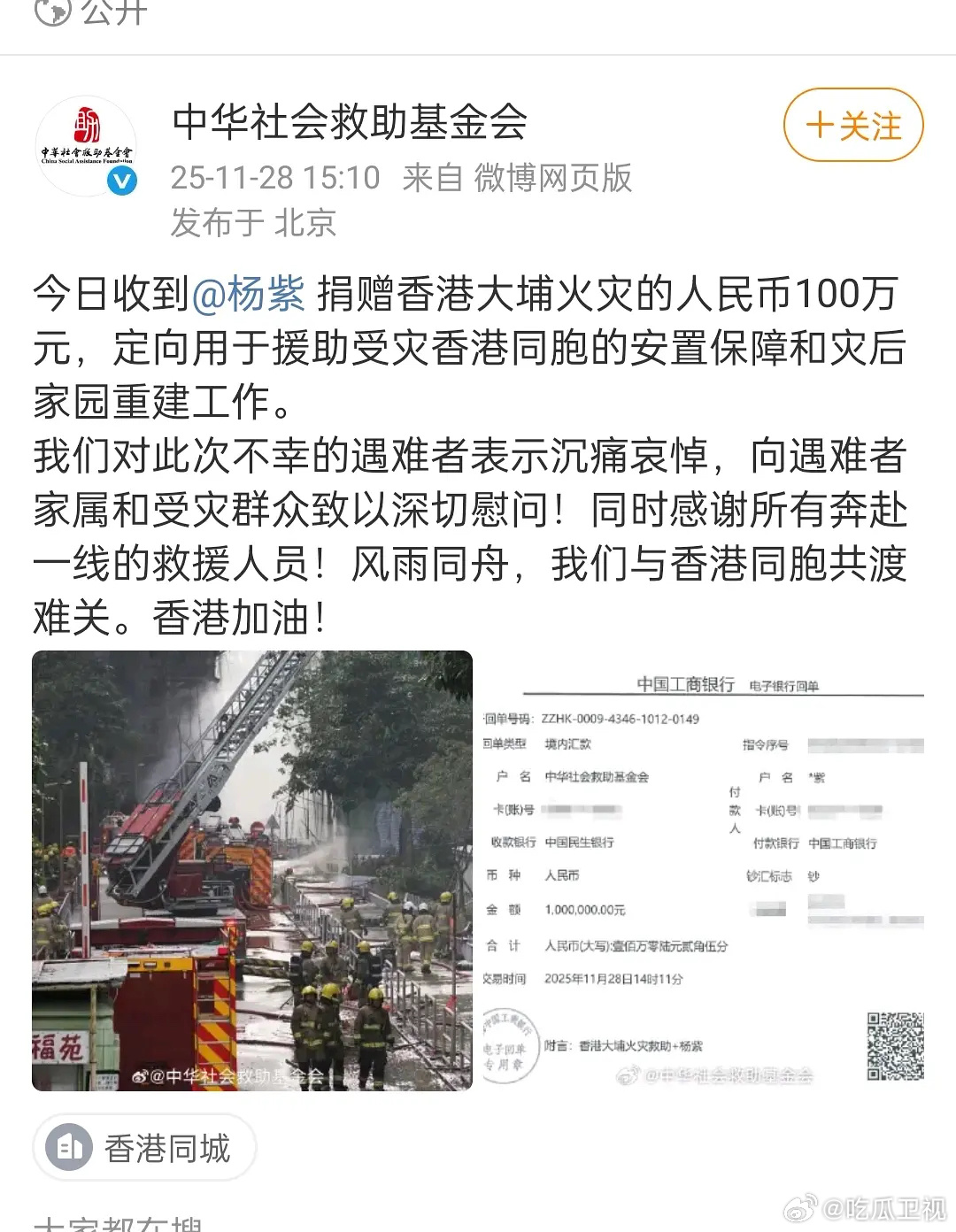 杨紫、易烊千玺都给hk捐款100w,四字本来今天生日,此前工作室的一些活动也都推迟了,这个寿星不错