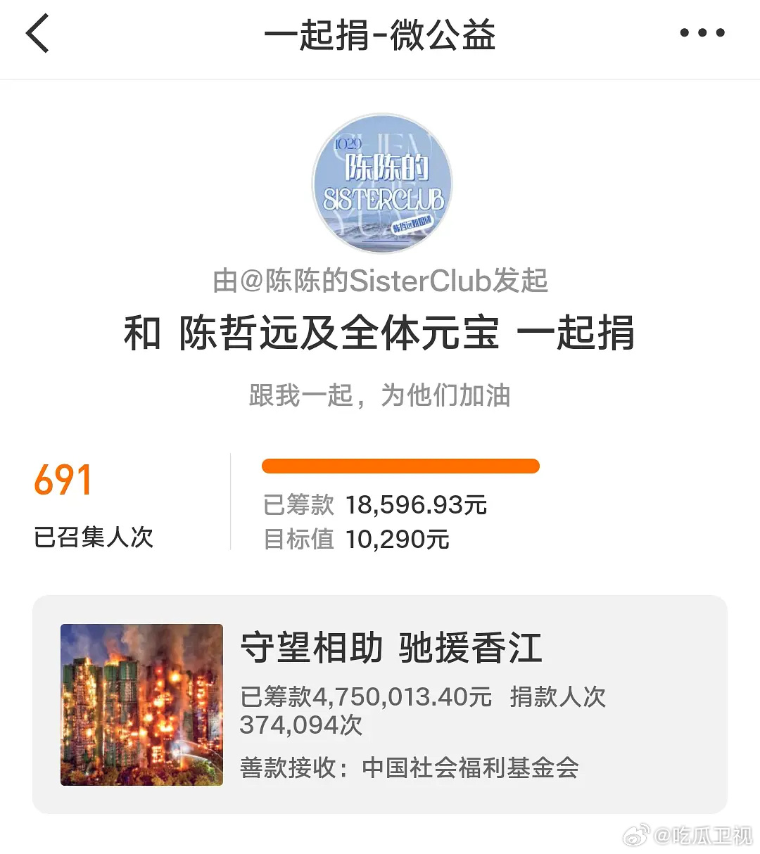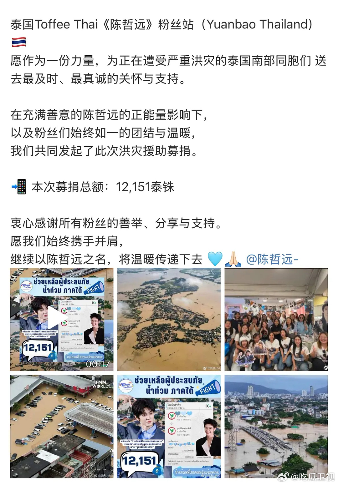 陈哲远粉丝在为香港火灾/泰国水灾遇难者捐款!远丝真好啊