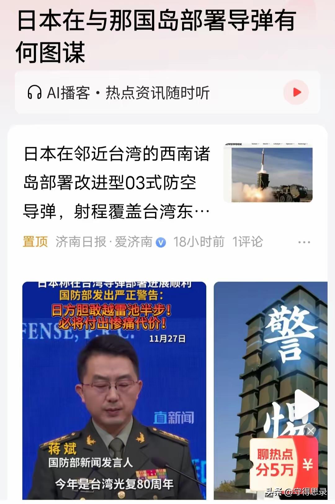 与那国岛,日本又生事! 与那国岛,按照战后联合国相关文件规定,与那国岛本不属于日本领土,但是日本近日又。在与那国岛部署进攻性武器,部署了导弹,威胁中国台湾省以及周边安全,这属不属于越雷池半步? 机会来了! 看大国如何维护战后秩序。日本此举无疑是对国际秩序的公然挑衅,更是对地区和平稳定的严重破坏。与那国岛地理位置特殊,其距离中国台湾省仅约110公里,日本在此部署进攻性导弹,如同在我国家门口架起了“枪炮”,司马昭之心,路人皆知。 大国向来是国际秩序的坚定维护者,面对日本这种罔顾历史、肆意妄为的行径,不会坐视不管。外交层面,大国定会通过各种渠道向日本发出严正抗议,要求其立即停止在与那国岛的危险军事动作,撤回部署的进攻性武器。同时,在国际舞台上揭露日本破坏战后秩序、威胁地区安全的丑恶嘴脸,争取国际社会的理解与支持。 军事上,大国将加强对周边海域和空域的监控与巡逻力度,密切关注日本在与那国岛的军事动态。一旦发现日本有进一步的危险举动,将果断采取反制措施,确保国家主权和领土安全不受侵犯。 历史的车轮滚滚向前,任何企图破坏战后秩序、挑战大国底线的行为都将以失败告终。日本应该清楚,在维护国家核心利益面前,大国有着坚定的决心和强大的能力。若其执迷不悟,继续在错误的道路上越走越远,必将自食恶果。让我们拭目以待,看大国如何以智慧和实力维护战后秩序,捍卫地区和平与稳定。