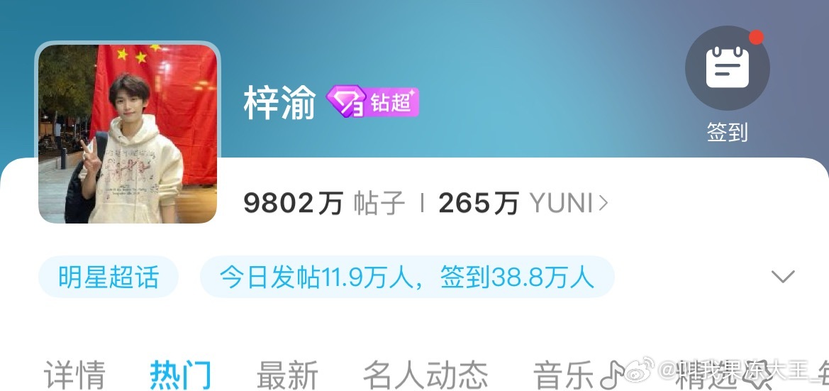 好快啊,也就四个月时间,梓渝超话发帖量马上破亿了