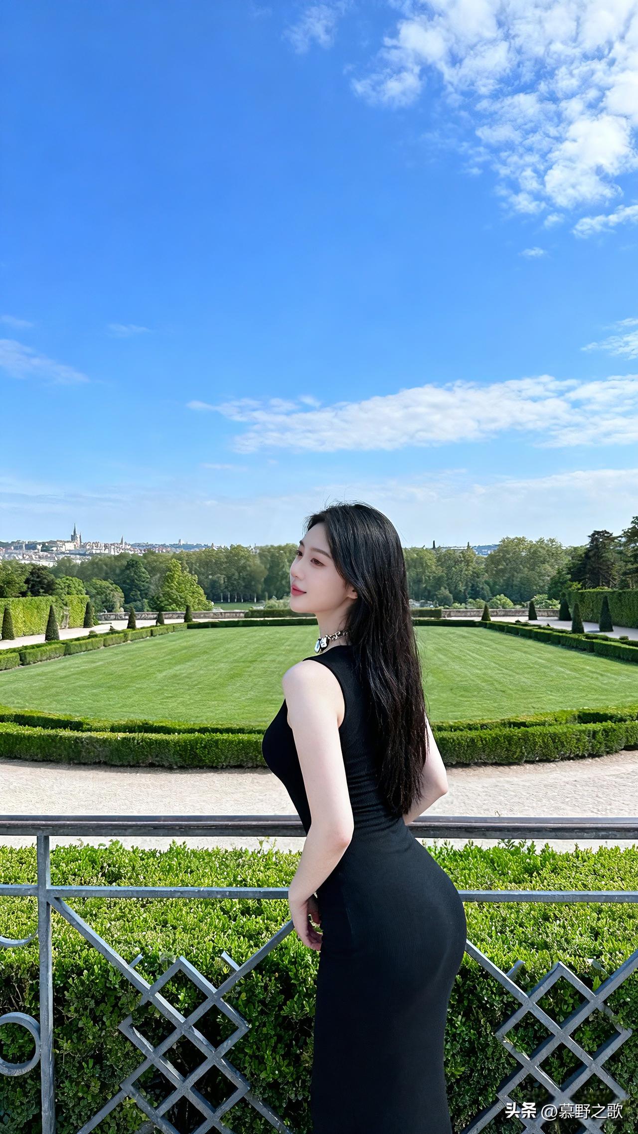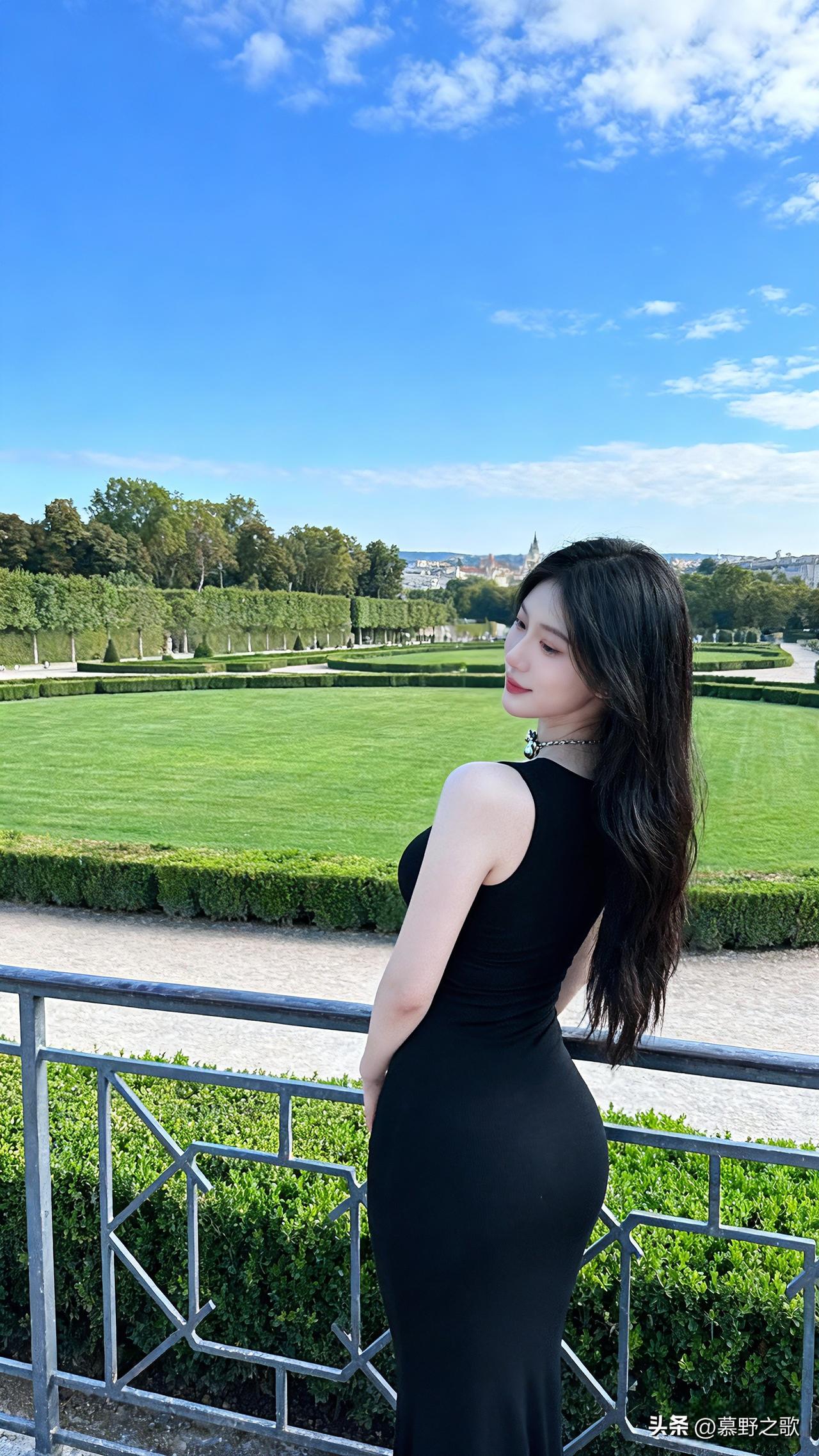 谁家院子这么大呀!今天来朋友家做客,一进门就被这大草坪给震撼了。绿油油的草地修剪得整整齐齐,还有各种造型的小树丛,远处还有古典建筑,简直就是个小公园嘛!我穿了黑色小裙子,戴着项链,靠在铁艺栏杆上拍照,感觉自己像个大小姐。朋友说这院子都是他们家自己打理的,每天都要修剪草坪,真是羡慕啊。在这样的院子里喝下午茶、晒太阳,日子过得也太惬意了吧!要是我家也有这么大院子就好了,天天都能在草地上打滚儿!