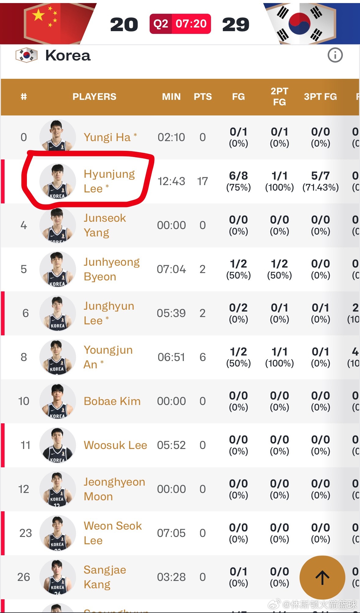 男篮世预赛中韩对决 韩国队这个李贤重完全就投疯了!!!!第二节还没打一半,已经拿下17分!