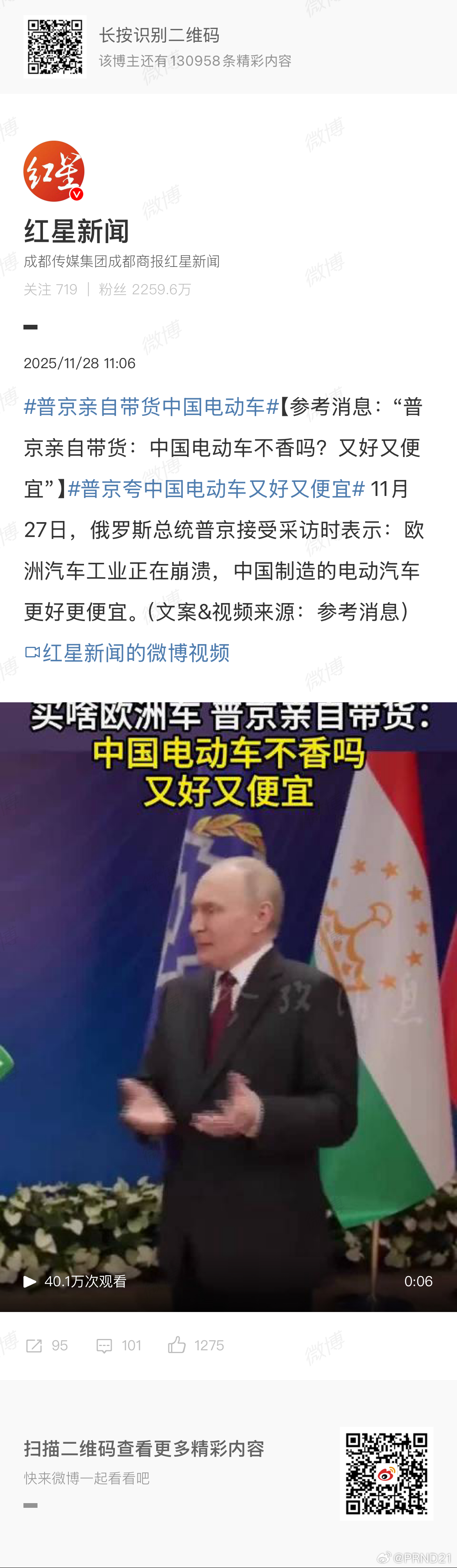 普京亲自带货中国电动车 图2是18天前的事儿。