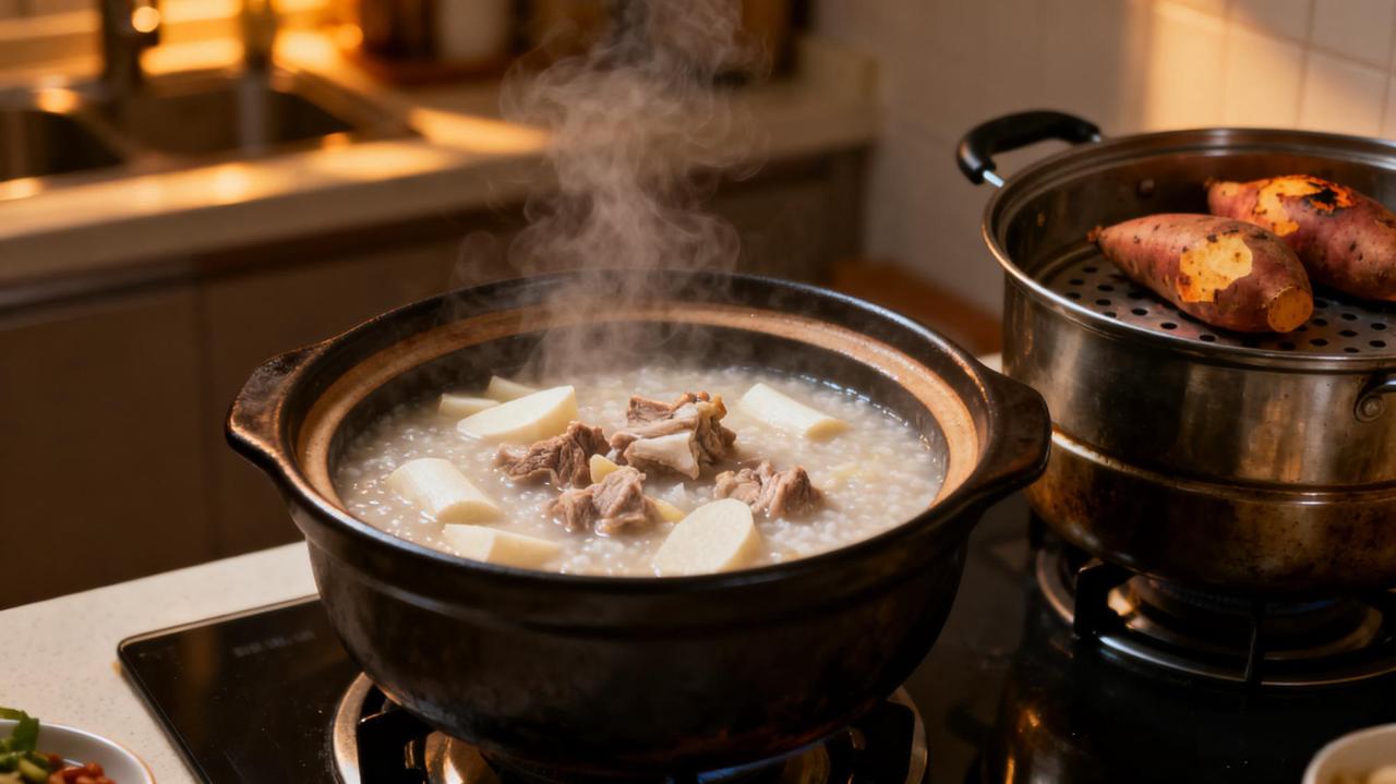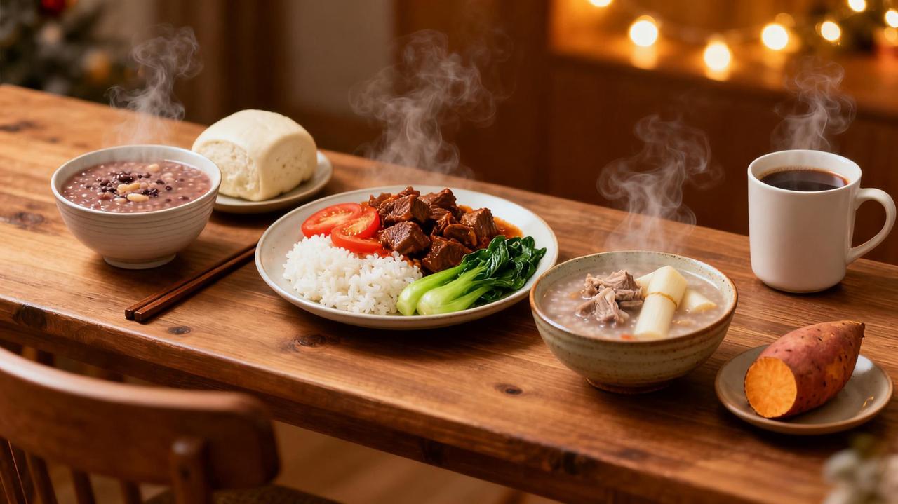 冬日三餐打卡:暖食暖胃,日子有滋有味 冬日的幸福感,藏在三餐的烟火气里。清晨用砂锅炖一锅杂粮粥,小米、红枣、山药慢慢熬煮,咕嘟声里飘出清甜,配着刚蒸好的松软馒头,暖乎乎下肚,开启元气满满的一天。 午餐要吃得扎实,一锅番茄牛腩炖得软烂入味,番茄的酸甜裹着牛肉的鲜香,配着米饭能多吃两碗。青菜焯水后淋上蒜蓉香油,清爽解腻,平衡了肉香的厚重。 晚餐主打温润滋补,山药排骨粥熬得绵密顺滑,排骨的鲜味融入粥底,撒上一把葱花提香。再蒸一盘红薯,甜糯绵软,暖到心坎里。 冬日三餐不必奢华,却要暖身暖心。每一餐的热气腾腾,都在驱散寒意,也在滋养日常。打卡冬日三餐,记录的不仅是食物,更是藏在烟火里的小确幸。 冬日暖食治愈系