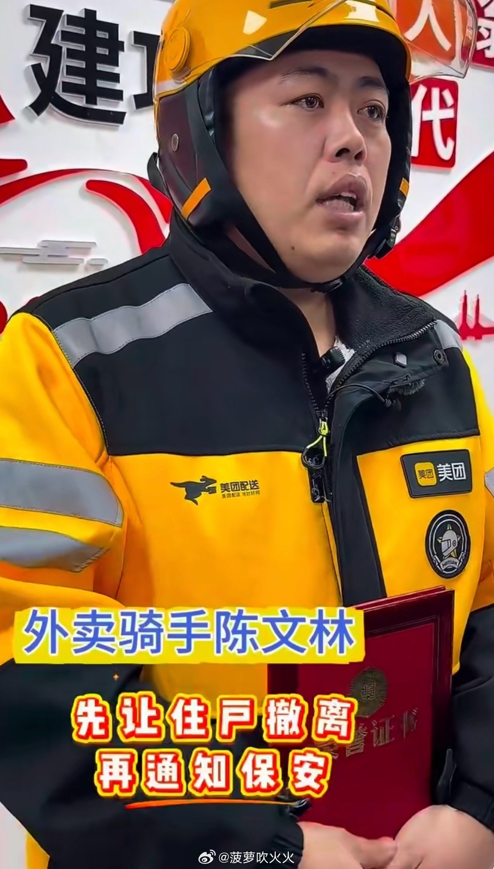 外卖小哥发现燃气泄漏教科书式处置头套捂得再严也挡不住警觉!通州骑手陈文林电梯内察觉燃气泄漏,先敲户提醒居民撤离,再冲保安室报信,还清晰指认隐患楼层,全程冷静又专业👏外卖小哥敏锐预警燃气泄漏获奖励
