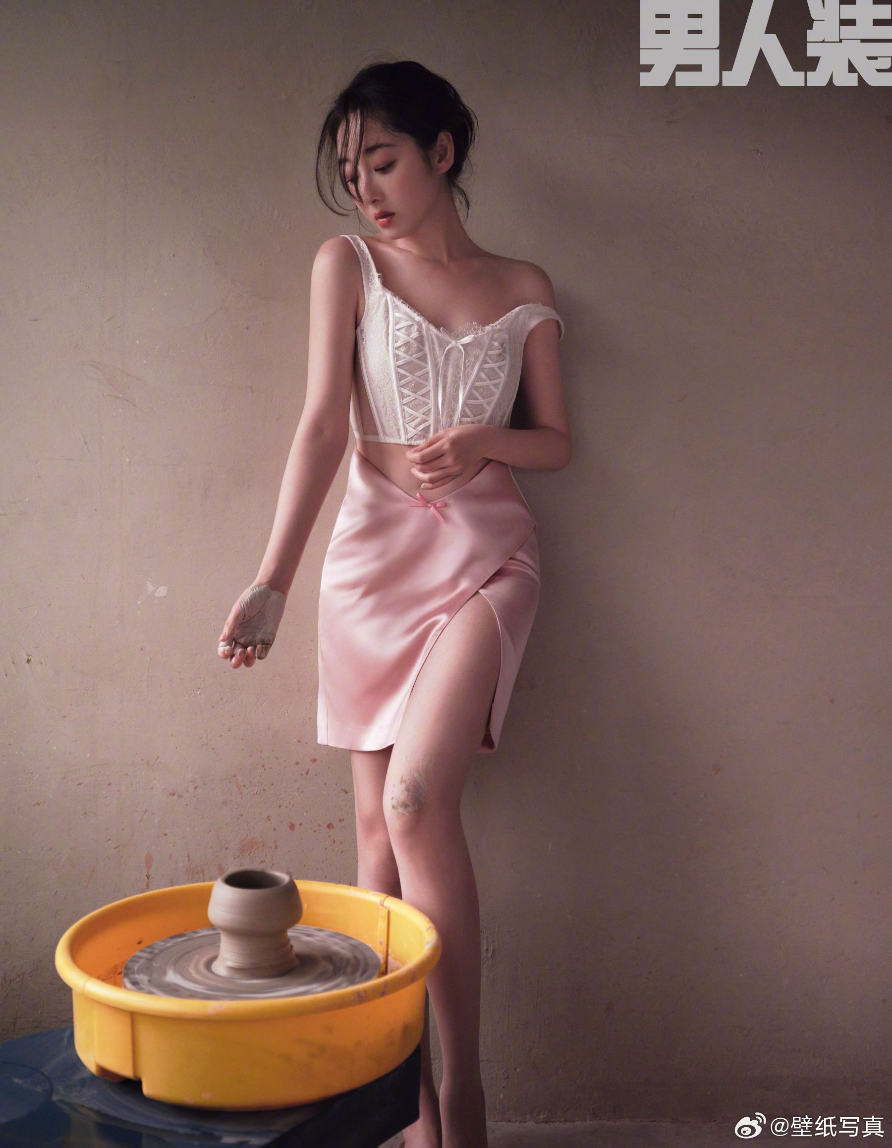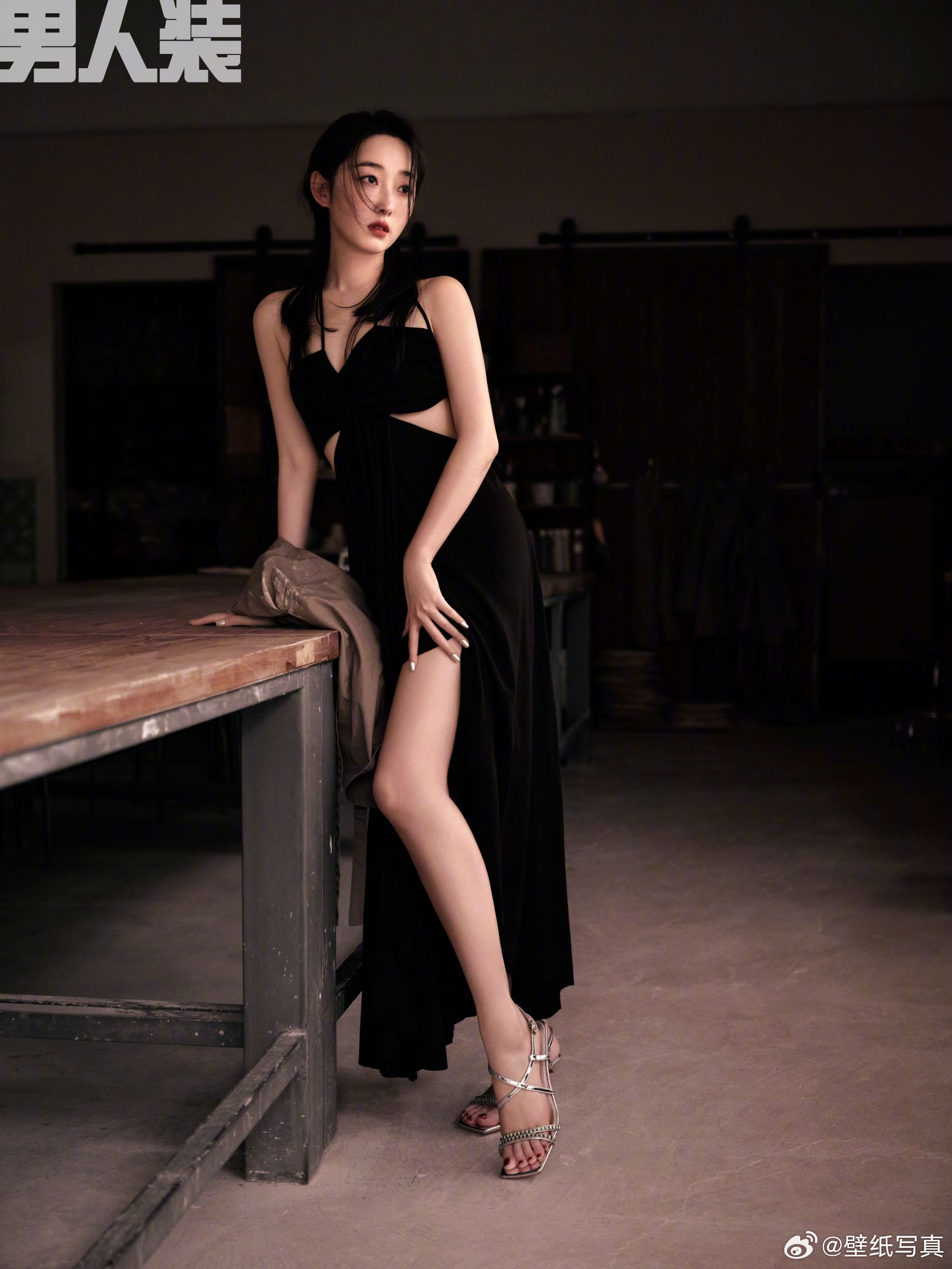 古力娜扎 活动生图 黑色系带连衣短裙(下)古力娜扎