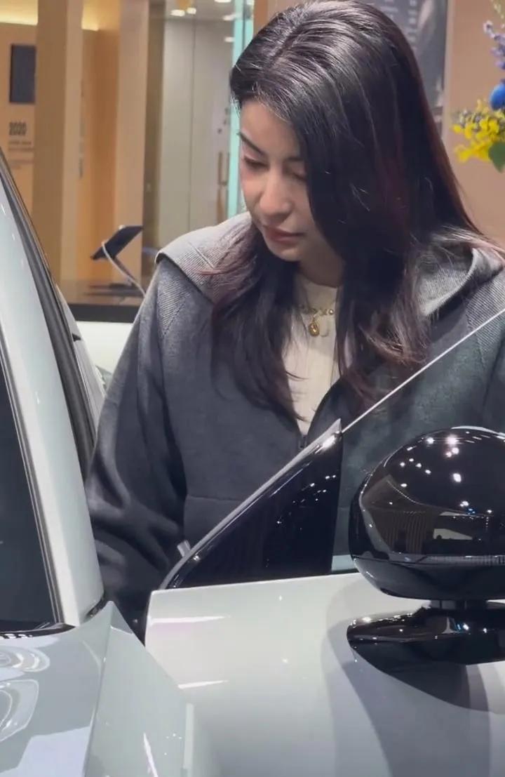 【郭晶晶车展偶遇,这优雅感太戳了!】 披肩长发+灰调连帽衫,知性温柔又松弛,俯身看车的样子优雅又接地气,姐姐的气质永远是舒服的高级感✨