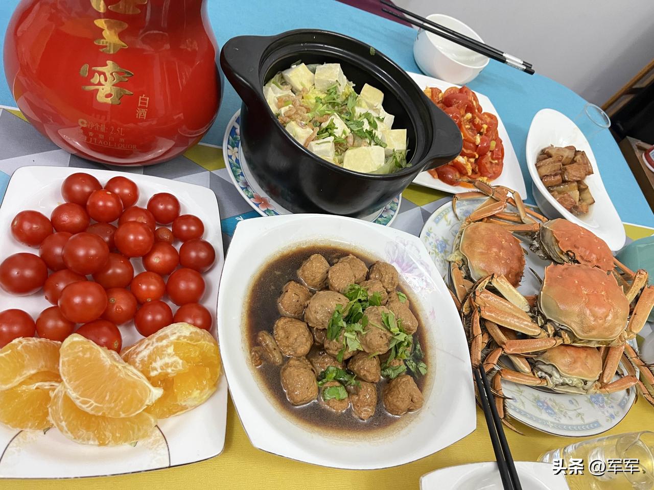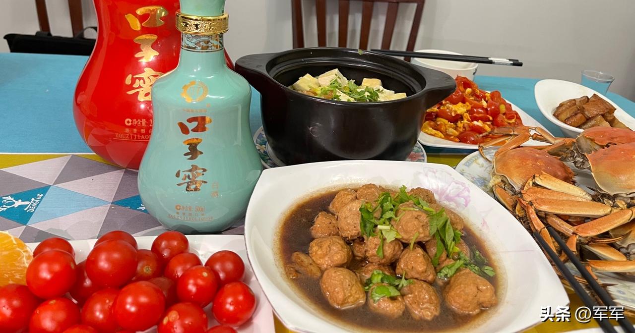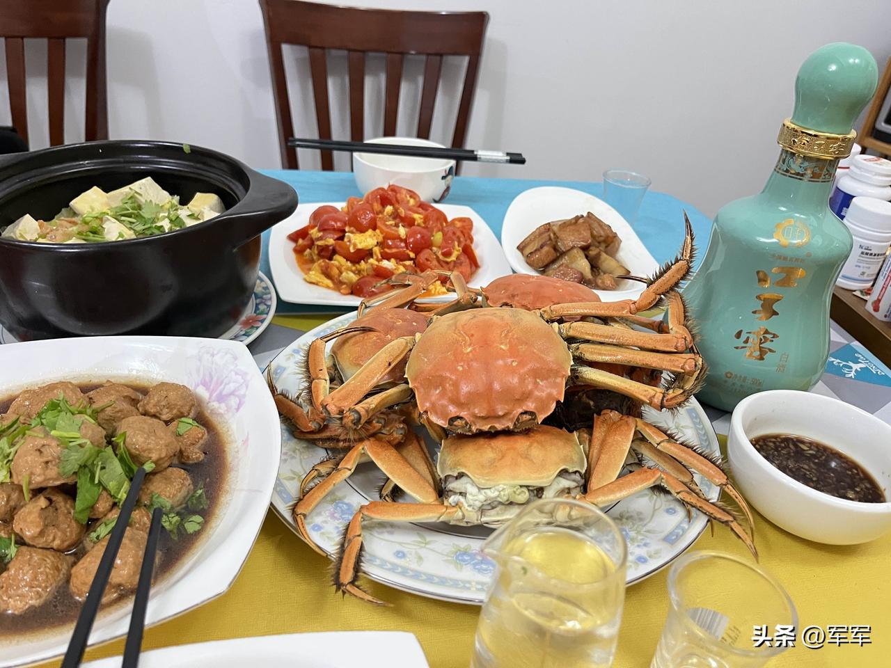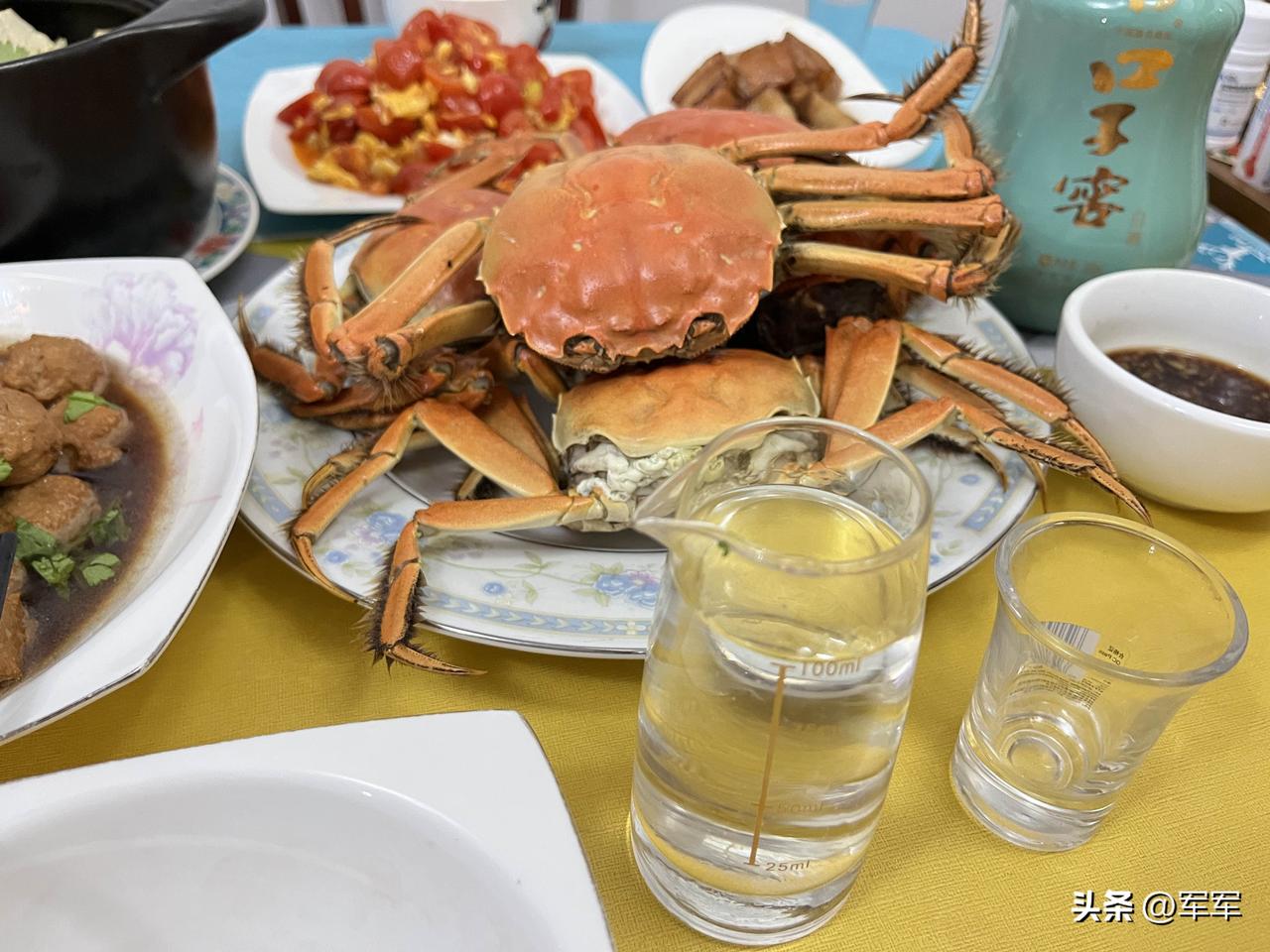 我是72年的鼠,退休三年了。 现在最不喜欢的就是在外面吃饭, 想喝酒了,就喜欢自己在家里面喝一口。 年龄大了,喝酒不是什么好习惯,我平时都不怎么喝酒的。 以前出去聚会啥的,就爱图个热闹,喝酒也是常事,现在我哪都不想去,就想在家里吃饭,外边再好吃也不如家里的家常饭吃着舒服入道。 今天买了几只螃蟹,四两多一个,40元一斤,这个价还可以,开始我想买小一些的螃蟹,那个价位便宜点,35一斤,我一想我都这岁数了,还有啥舍不得吃的,省着钱有啥用呢?就买那个最贵的吧! 螃蟹是主菜,又简单弄了几个小菜,砂锅豆腐,鸡蛋炒西红柿,汆丸子,切了姜沫泡醋蘸螃蟹吃。 因为有螃蟹,螃蟹是大凉的,我就喜欢配点白酒吃。 我怕喝多,拿了量酒器倒了100毫升白酒,再倒在小酒杯里慢慢地喝。 螃蟹挺大的,吃两个就有些吃饱了,里面是满黄的,一口螃蟹,一口酒,再夹点小菜,慢慢地品,慢慢地喝,这才叫喝酒吃饭呢。 今天喝的是42度的白酒,兼香型的还行,酒劲不算大,喝到口里满满的粮食酒香味,回味无穷,我喝了100毫升不多不少刚刚好。 还是在家里面喝酒舒服啊,不用随声附和别人,自己想喝多少就喝多什么,自己想吃什么菜就夹什么菜,慢慢喝,慢慢品,这样才能喝出酒的灵魂,喝出酒的芳香……边喝酒还能边回忆,回忆自己的过往! 人生已经过了半百,前半辈子的故事已经都在酒中,开启后半生的新旅程,愿我们所有的人以后都会越来越好,我干了,你随意![耶]