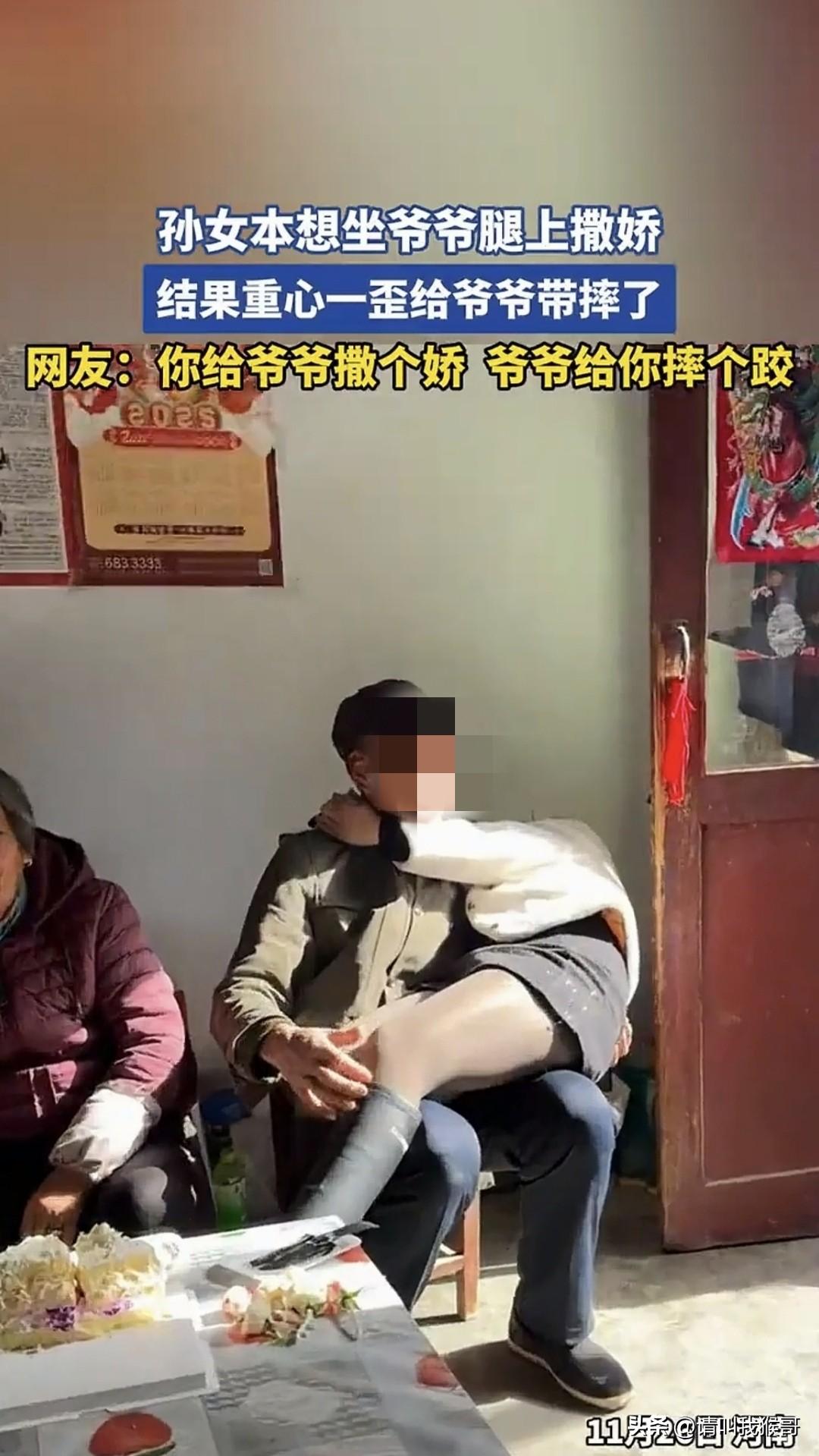近日,孙女坐爷爷腿上撒娇这个事引发网友争论不休,有人觉得这是亲人之间的温馨互动,也有人觉得孩子大了,加上这黑丝穿着,有点不合适。不过从视频中看,仅仅只是坐了一下,孙女就因为身体不平衡摔倒在地了,整个过程没有任何不合适的肢体接触。其实这种亲昵行为在很多家庭都存在,所以大部分网友表示可以理解,也很正常?但有些人说话就有点难听了,于是大家在视频评论区争论不已。 那么你觉得爷孙这种亲昵举动合适吗?