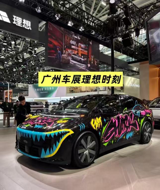 广州车展理想展台的 “涂装牌” 打得挺巧 ——i8 贴满粤文化元素,把广州味裹在车身上,算懂了本地用户的情绪;i6 的荧光鲨鱼涂装走潮酷风,抓年轻人眼球。没光靠堆配置,而是用 “定制化视觉” 拉近距离,现场围拍也说明这种 “接地气 + 个性化” 的思路,比单纯堆参数更能戳中看展人的兴趣点。