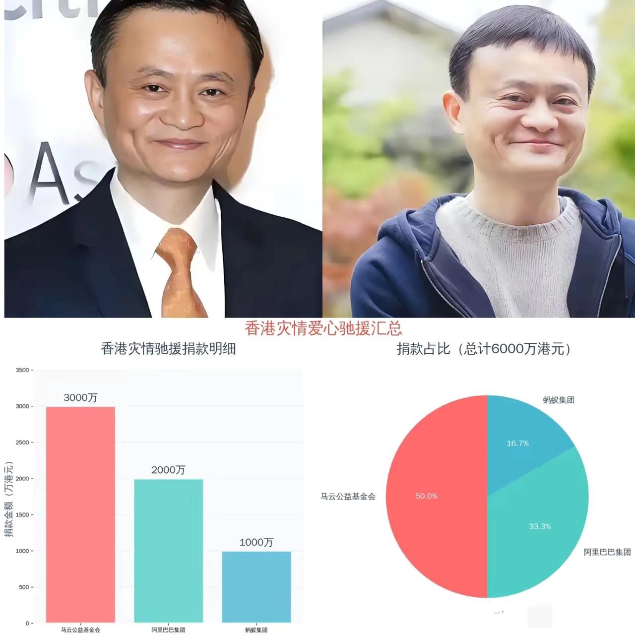 不仅刘强东没料到,马化腾也没料到,香港大埔宏福苑火灾后,最先带着真金白银冲过来的居然是马云!11月26日火灾发生,27日阿里巴巴就砸2000万港元支持救援安置,马云公益基金会又补3000万,一半给受灾家庭,一半致敬救火英雄,这五千万到账速度比热搜还快。 而且,菜鸟连夜调配食物被褥,高德实时更新救援路线,不是捐钱就完事,而是全方位支援。总有人觉得退休大佬就该岁月静好,可马云这波操作,让咱看到了什么叫真担当,不装样子,同胞有难绝不缺位,这才是实实在在的温暖。 你身边有没有那种“平时不声不响,关键时候超靠谱”的人或事呢?