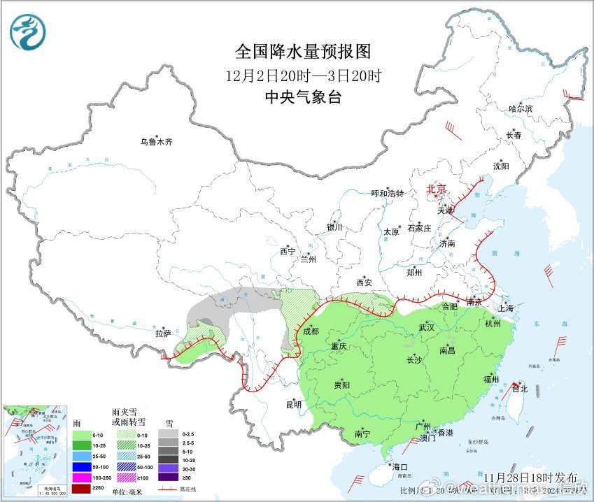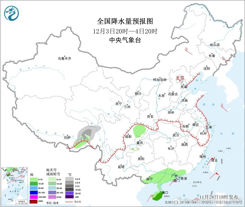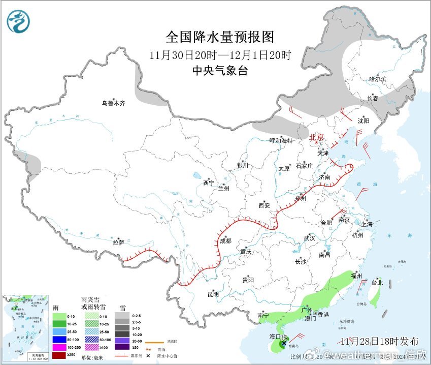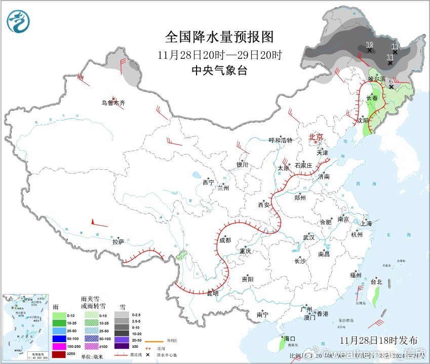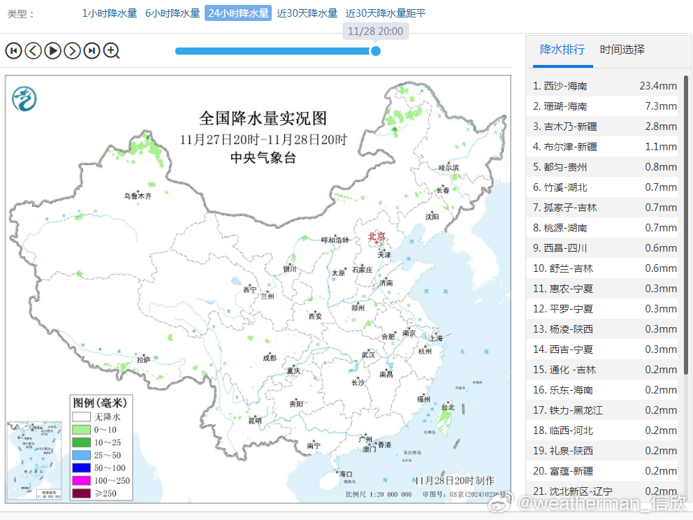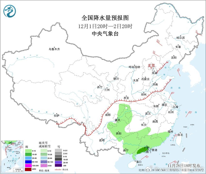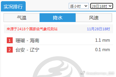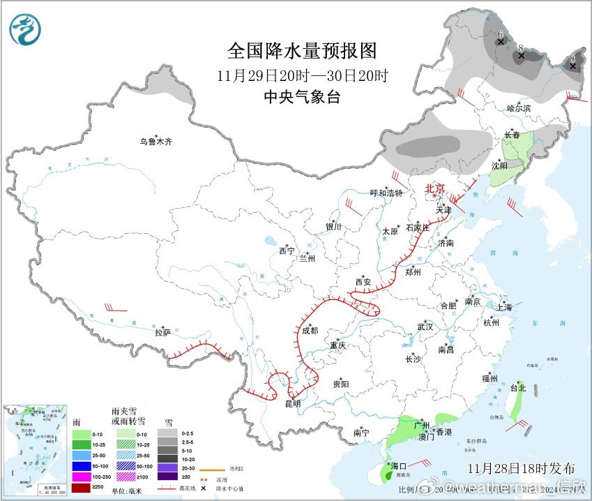 【雨雪】昨晚到今天,我国降水稀少。在今天下午,甚至小时降水榜上,只有2个站点。未来东北的降雪会发展增多,因为高空槽(冷涡)+低涡+地面气旋,深厚的涡旋系统,使得内蒙古东部和黑龙江部分地区可能出现大雪甚至暴雪。南方地区在12月2-3日降水有个短暂发展增多,随后又变得干燥。预计,11月28日20时至29日20时,新疆阿勒泰地区、内蒙古东北部、黑龙江大部、吉林东部、辽宁东北部等地部分地区有小雪或雨夹雪,其中,内蒙古东北部、黑龙江中西部等地部分地区有中到大雪,局地暴雪(10~12毫米),新增积雪深度3~7厘米,局地10厘米以上。预计,11月29日20时至30日20时,内蒙古中东部和东北部、东北地区北部和东南部、新疆北疆北部等地部分地区有小雪或雨夹雪,其中,内蒙古中东部、黑龙江北部等地部分地区有中到大雪(5~8毫米)。