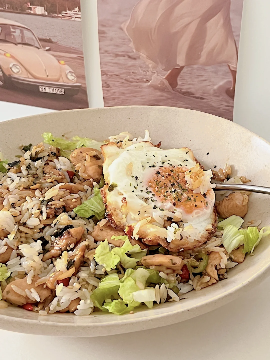 ✨再煎一个溏心蛋,蛋白边tree tree的,蛋黄溏心的