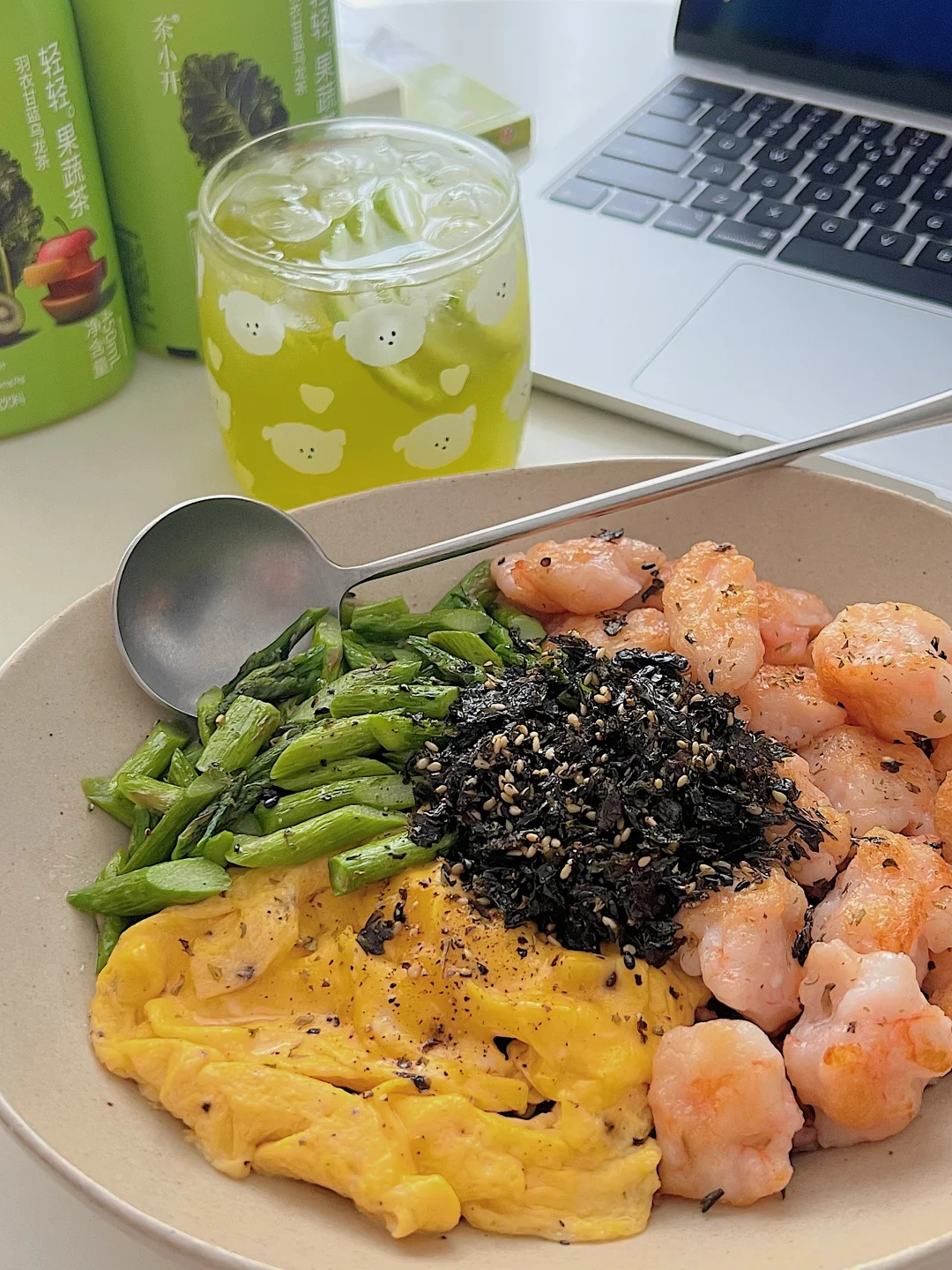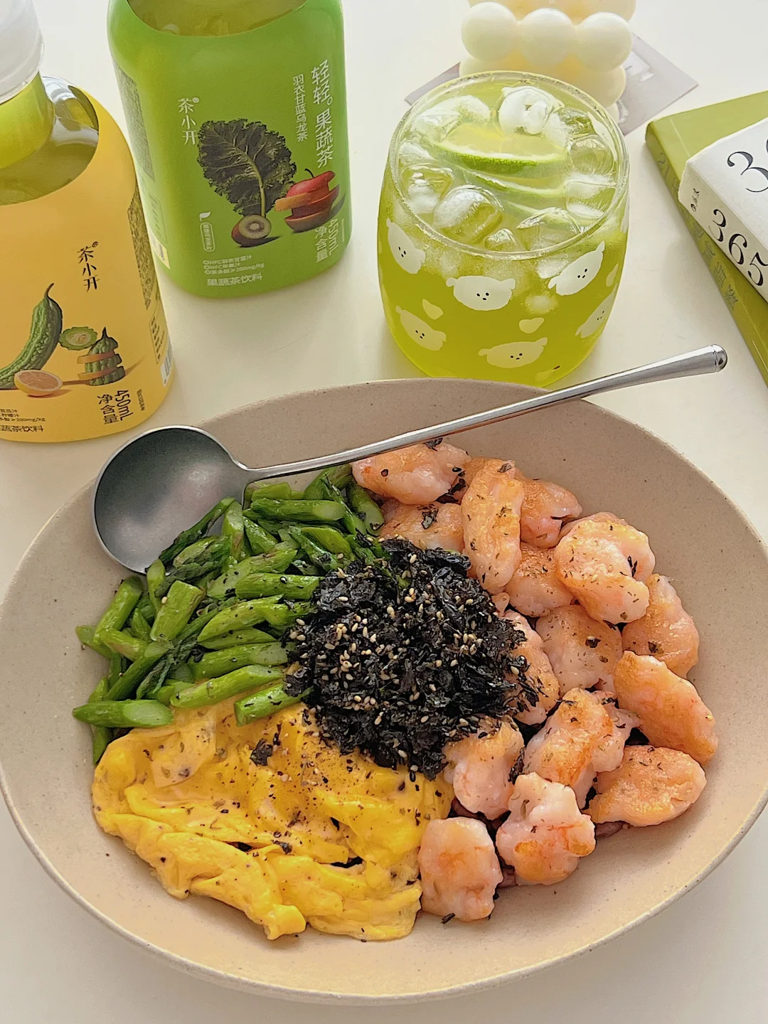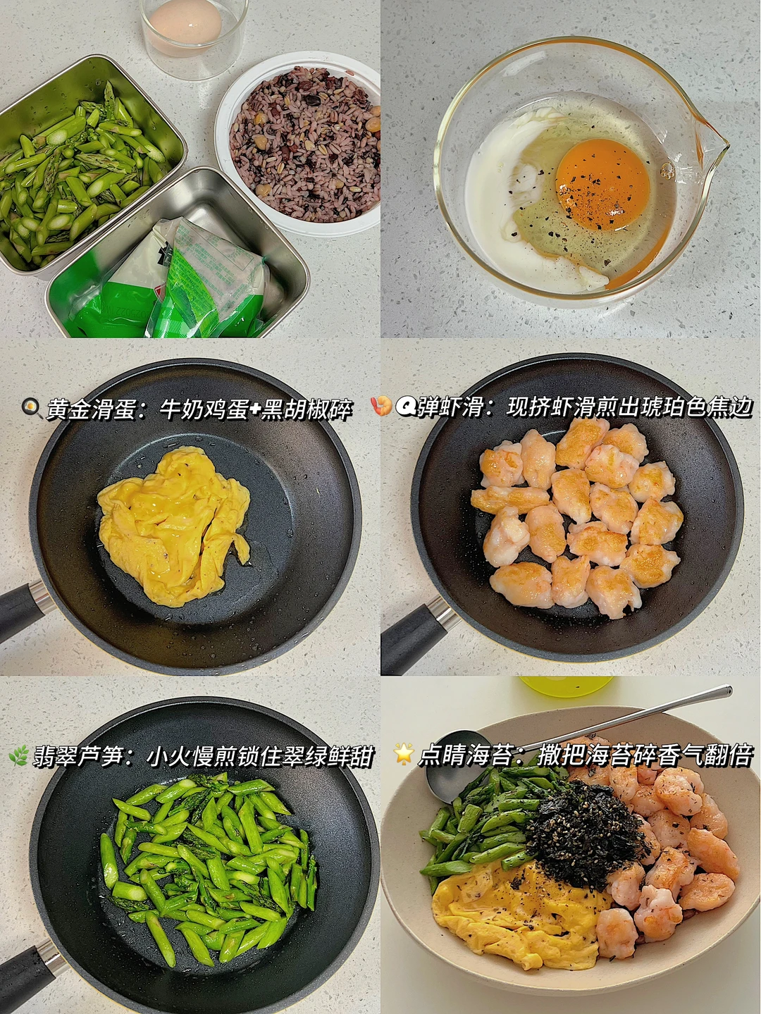 虾滑+芦笋+滑蛋+黑芝麻=治愈系配色!