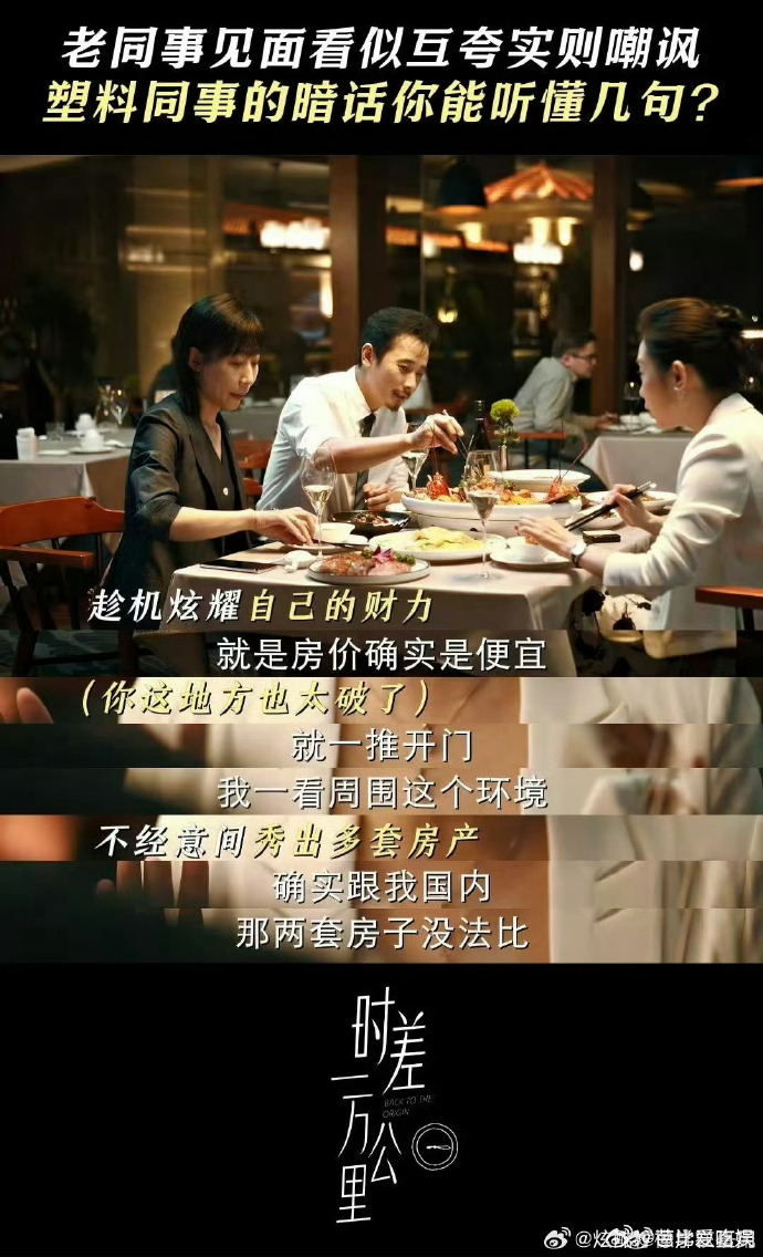 合格的前同事要像死掉的前任一样 谁懂袁源这种前同事的窒息感!《时差一万公里》里她对着张冉凡尔赛,炫两套房还假谢人家腾位置,表面热情背后较劲,塑料感都要溢出屏幕了~时差一万公里