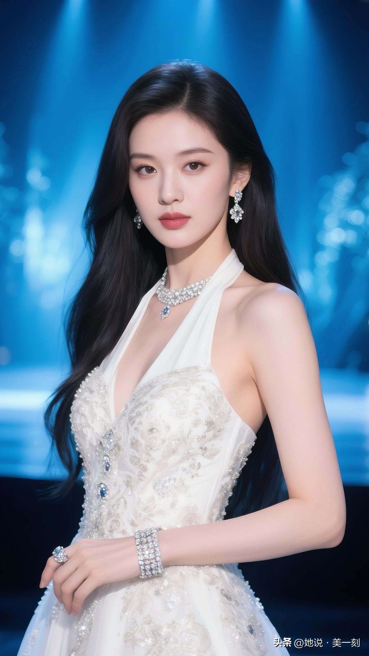 月华如练,美人如玉。你认为哪位女星长在你的审美上 梦幻蓝光下,闪耀的公主裙装,宛如童话中的仙子。