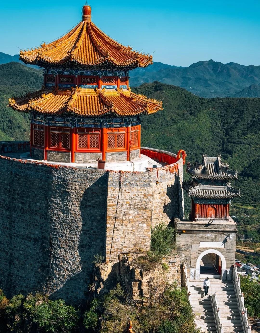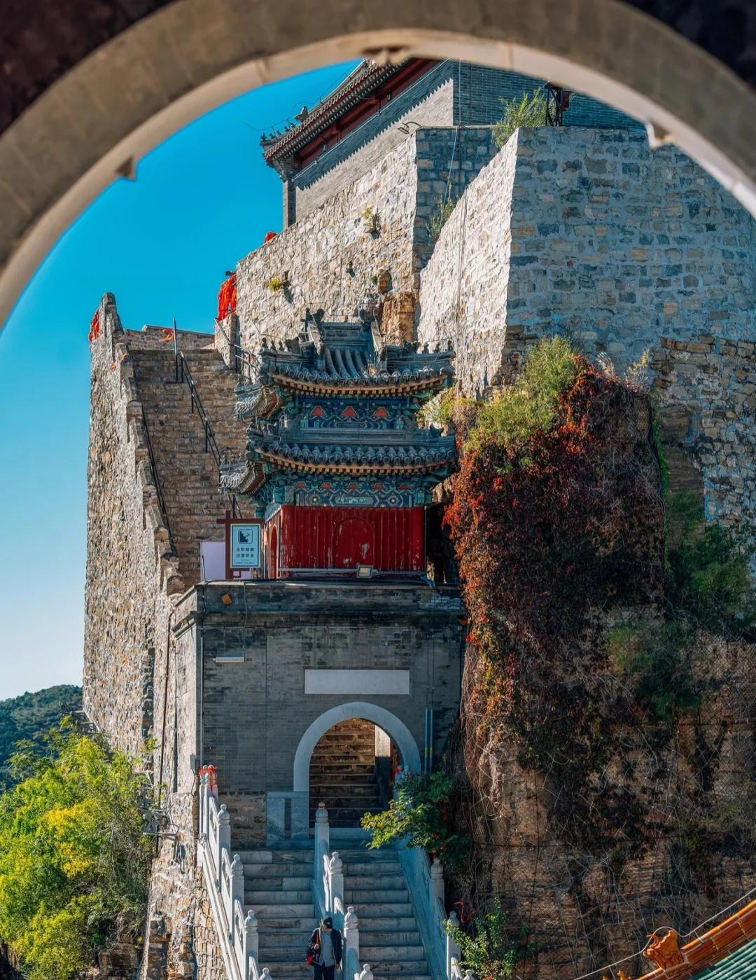 北京市区出发1.5小时,爬山祈福好去处 位置交通:位于北京平谷刘家店的丫髻山,是一处距离市区仅75公里的灵秀之地。从北京市区出发,自驾仅需1.5小时即可抵达,交通便利。若选择公共交通,可从东直门乘坐852路至平谷世纪广场,再转乘平19路直达景区。停车场全天收费仅10元。 门票:50元/人 登山路线推荐:太极广场→灵官殿→回香亭→玉皇阁(山顶)→西侧松林土路下山→山脚停车场。全称大概需要3个小时。 一进景区,迎接你的便是365级台阶,象征着一年365天的祝福。攀登而上,每一步都仿佛在向美好生活迈进。登上台阶后,别具特色的祝福拱门是绝佳的拍照留念点。 继续往里走每走一段都有一个寺庙,半山腰东岳庙后,一片祈福风铃区令人流连忘返。数不清的风铃在微风中轻轻摇曳,叮咚作响,在这稍作休息,让心灵得到片刻宁静。 沿途的石柱扶手上刻满名字,这些都是行善之人留存的印记。触摸这些充满灵气的石刻,感受善行义举带来的正能量。 爬到山顶玉皇阁、碧霞元君祠建立在悬崖峭壁之上,飞檐斗拱,气势恢宏,真是世所罕见!山上凸起的两座峰岩,形似古代女子的双髻,充满了温婉与秀美,所以取名丫髻山。 据说这个地儿的建立可以追溯到唐代,是个皇家祈福圣地,据说一路台阶攀登上去,可以把好运带回家。 如果不想爬山的,景区内有摆渡车,50元/位,下车后仅需步行200多米即可到达山顶。 推荐从右侧防火道下山,道路平缓好走,能有效保护膝盖,无需原路返回。 吃饭餐厅:推荐普源素食餐厅,位置在景区山脚下太极广场右侧,菜单一共八道菜,每道菜真的都超级好吃!!!而且价格也不是很贵,是下山后补充能量的理想选择 购物:丫髻山景区门口马路两侧有很多卖农产品的小摊,价格亲民,推荐罐头瓶装的辣椒酱很好吃哦。 温馨小贴士:建议自带饮用水和零食,山上售卖点较少且价格较高。 每年春节这里还有庙会,又是一个春节好去处。一年一度春节庙会 寺庙 丫髻山