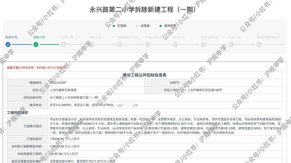 静安投资17.6亿对永兴路第二小学进行重建~ 一、建设地点 东至312-06地块,南至永兴路,西至312-07地块,北至312-08地块。 二、工程简介 拟拆除学校现有校舍建筑及相关设施;新建一所25班小学,设置教学用房、办公用房、生活用房等,同步实施室外总体工程。 项目拆除原有建筑面积3580平方米,新建总建筑面积19349.01平方米,其中地上建筑面积11036.61平方米;地下建筑面积8312.40平方米。 基地内新建两栋地上建筑,体育运动场地和地下功能空间等,设置教学及教学辅助用房、办公用房、生活用房、运动场地及地下车库等。 主教学楼(1号楼)地上5层,建筑高度23.95米。综合楼(2号楼)地上5层,建筑高度23.95米。 地下室为地下一层,层高5.7米。 三、工程投资 总投资176289.59万。 四、建设周期 780天。 静安区 永兴路