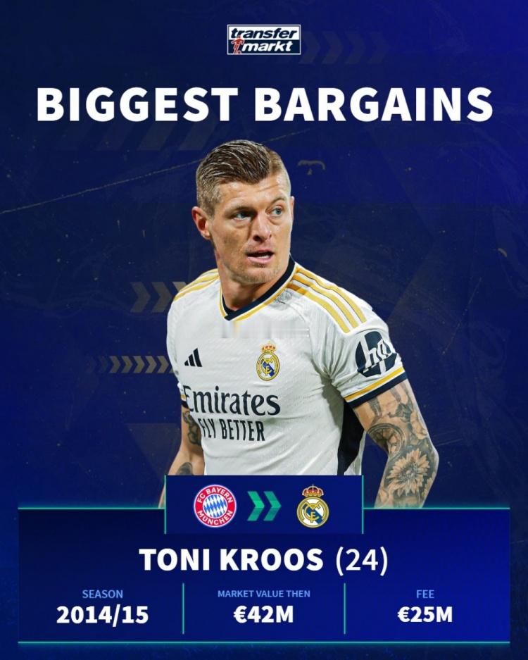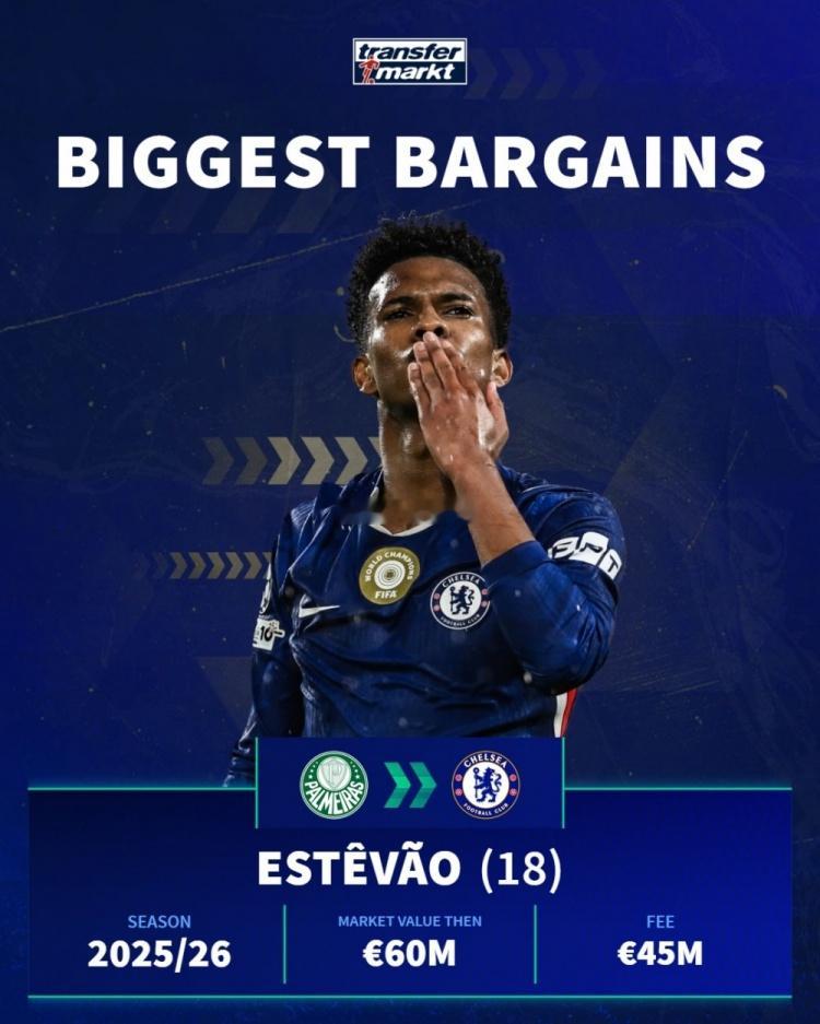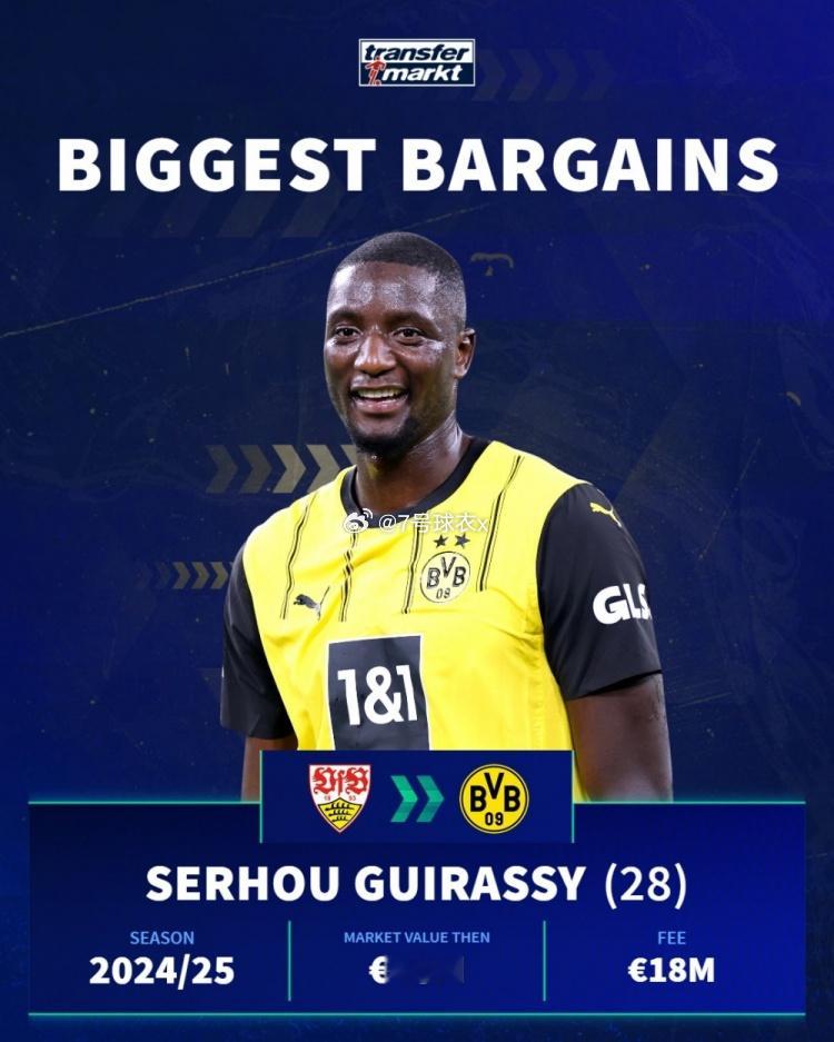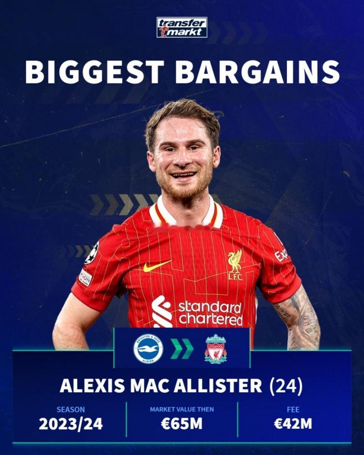 黑色星期五当天,德国转会市场推出了应景盘点,此次盘点为足坛最划算的交易,哈兰德从多特加盟曼城在列。以下为德转盘点7笔足坛最划算交易:哈兰德(多特→曼城):当时身价1.5亿欧,转会费6000万欧麦卡利斯特(布莱顿→利物浦):当时身价6500万欧,转会费4200万欧埃斯特旺(帕尔梅拉斯→切尔西):当时身价6000万欧,转会费4500万欧克罗斯(拜仁→皇马):当时身价4200万欧,转会费2500万欧库尔图瓦(切尔西→皇马):当时身价6500万欧,转会费3500万欧费基尔(里昂→贝蒂斯):当时身价6000万欧,转会费1980万欧吉拉西(斯图加特→多特):当时身价4000万欧,转会费1800万欧